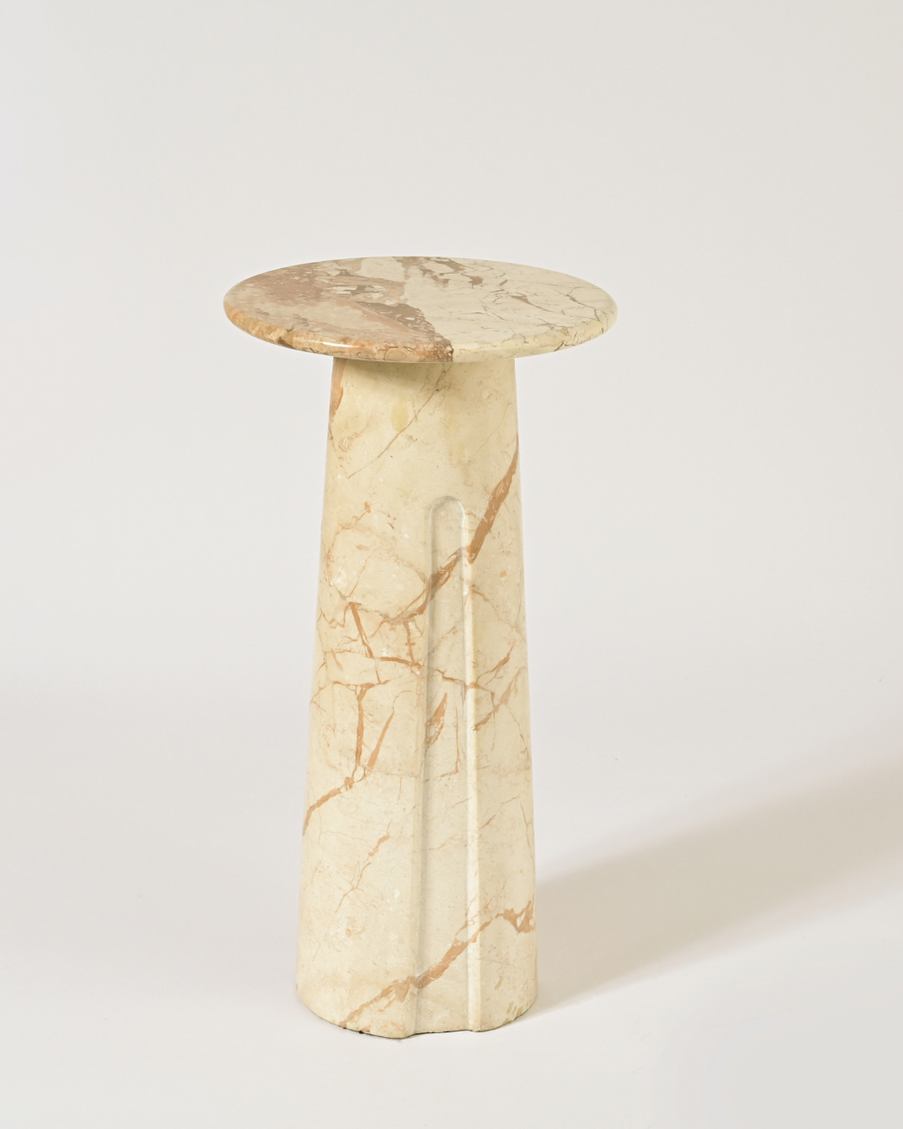 The end table belongs to this world of discreet luxury. It is not placed casually; it is curated into the architecture of living. A surface to hold what matters, perhaps a vessel in hand-polished marble, perhaps nothing at all. An object that edits the space around it without insisting on attention.