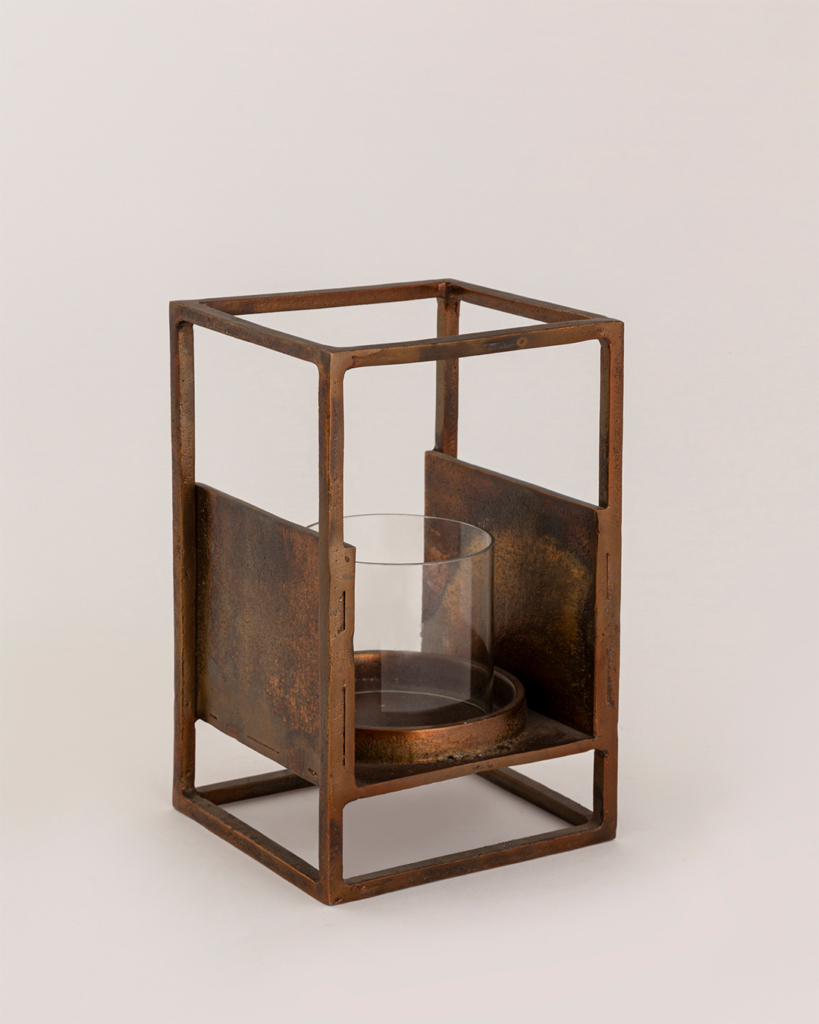 - Leshya Tea-Light Holders: Crafted in cast aluminium with an antique brass finish, the Leshya set brings a warm, diffused glow to festive settings. Their tactile surfaces and compact forms make them versatile, equally at home in a curated console arrangement or illuminating a dining spread. Far from being transient candles, they act as luminous sculptures, small yet enduring gestures of light.