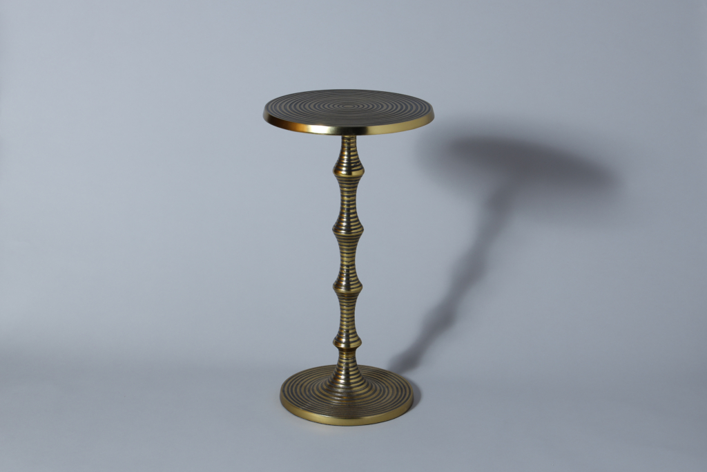 The Sadie Coffee Table is a study in motion held still. Drawing inspiration from the circular ripples of water, its concentric design carves depth into simplicity. Forged in aluminium and finished in a rare blackened brass patina, it blurs lines between traditional Indian metalwork and modern global design.