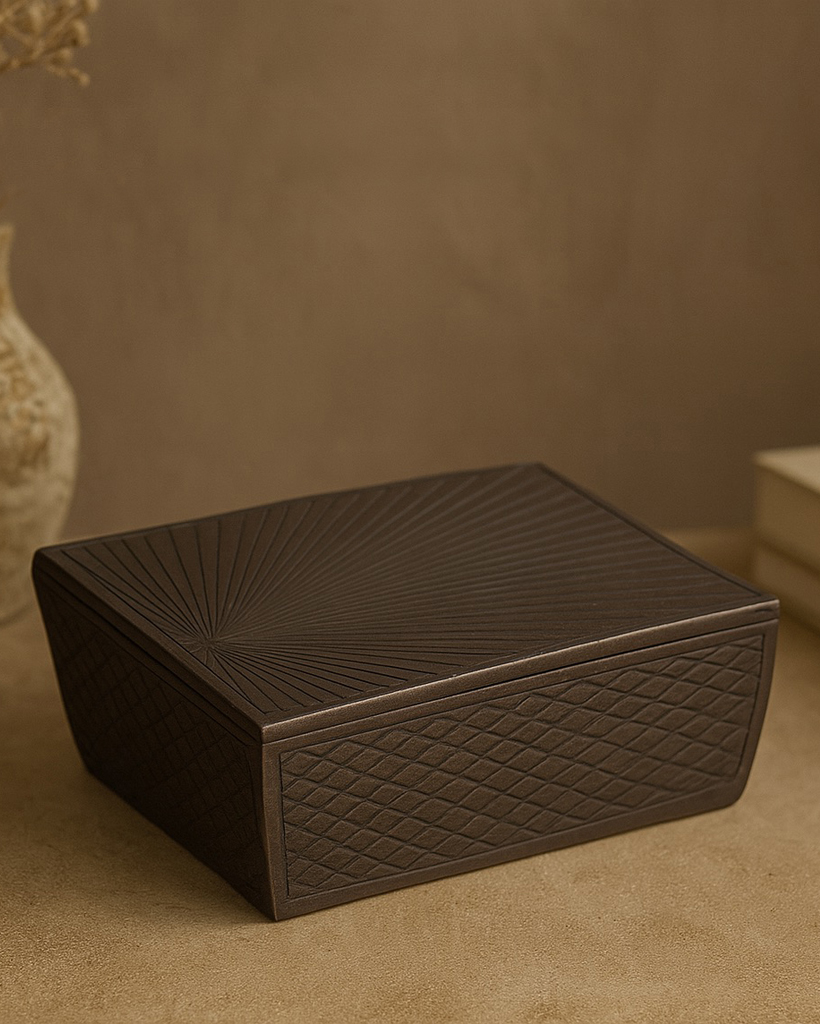 The Clada Box is a harmonious fusion of artistry, strength, and functionality, meticulously crafted from high-quality cast aluminium. The name “Clada,” inspired by the word “Clarity,” symbolizes transparency, purity, and precision in design. This box is not just a storage piece; it’s a work of art that exudes elegance and enduring beauty, ideal for those who appreciate refined craftsmanship and timeless sophistication.