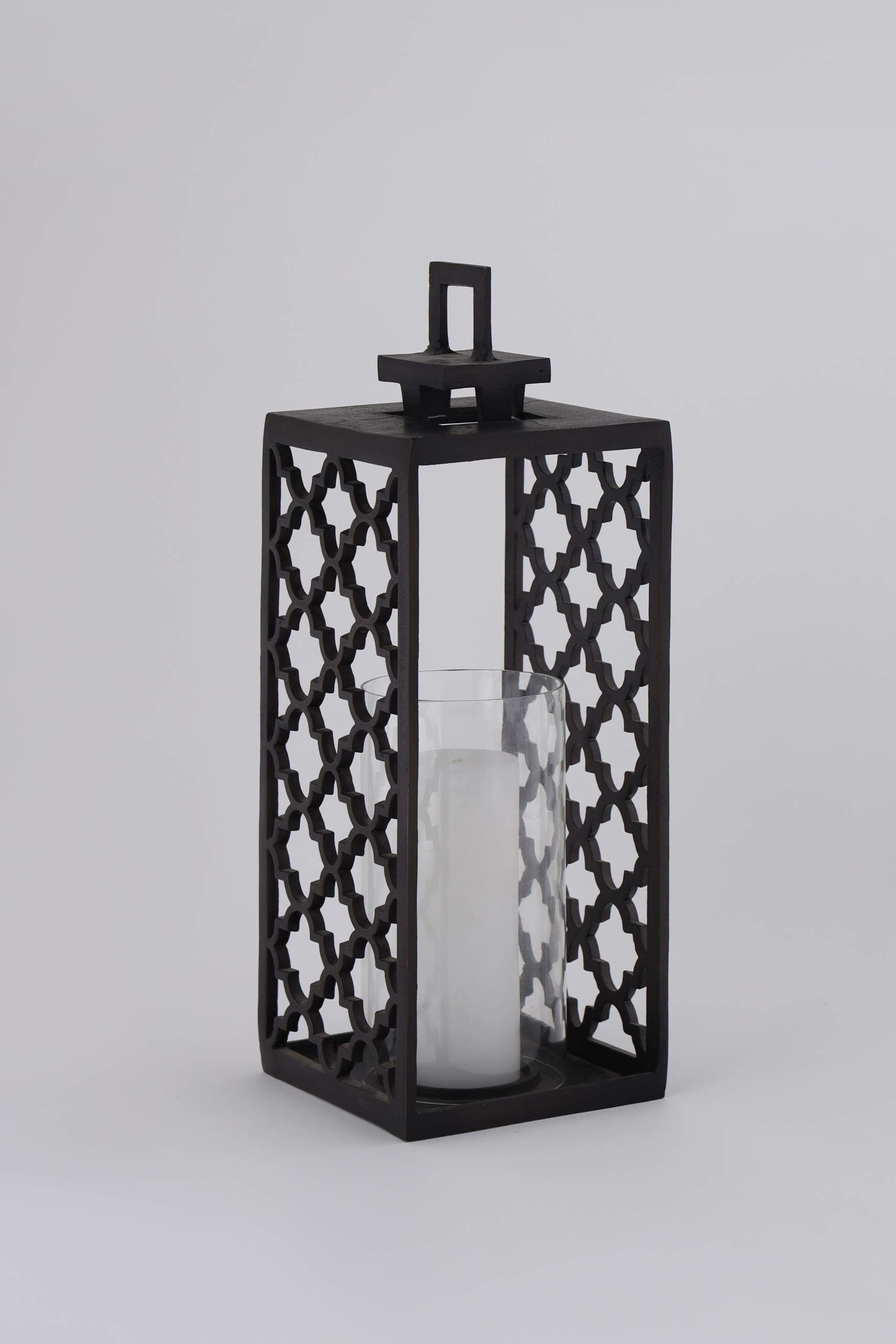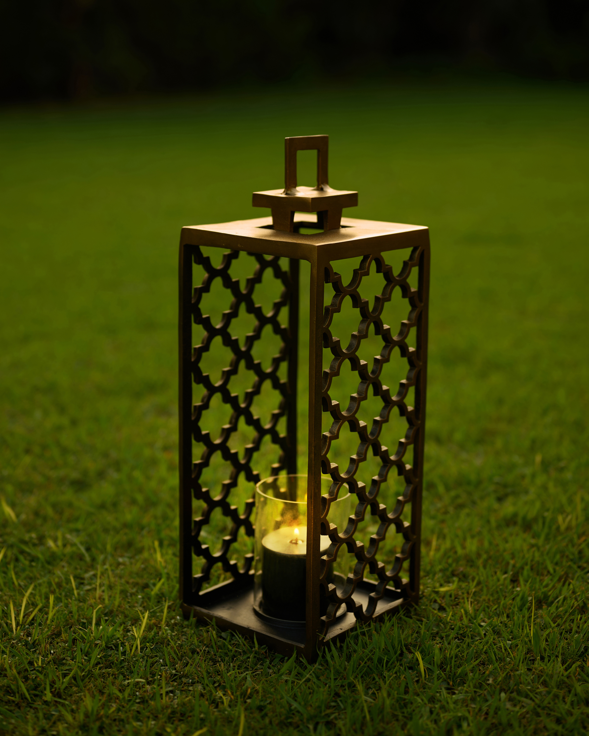 Shop Eclipse Lantern in cast aluminium with brass antique finish at 20.25 in an elegant piece perfect for creating festive ambience in any home
