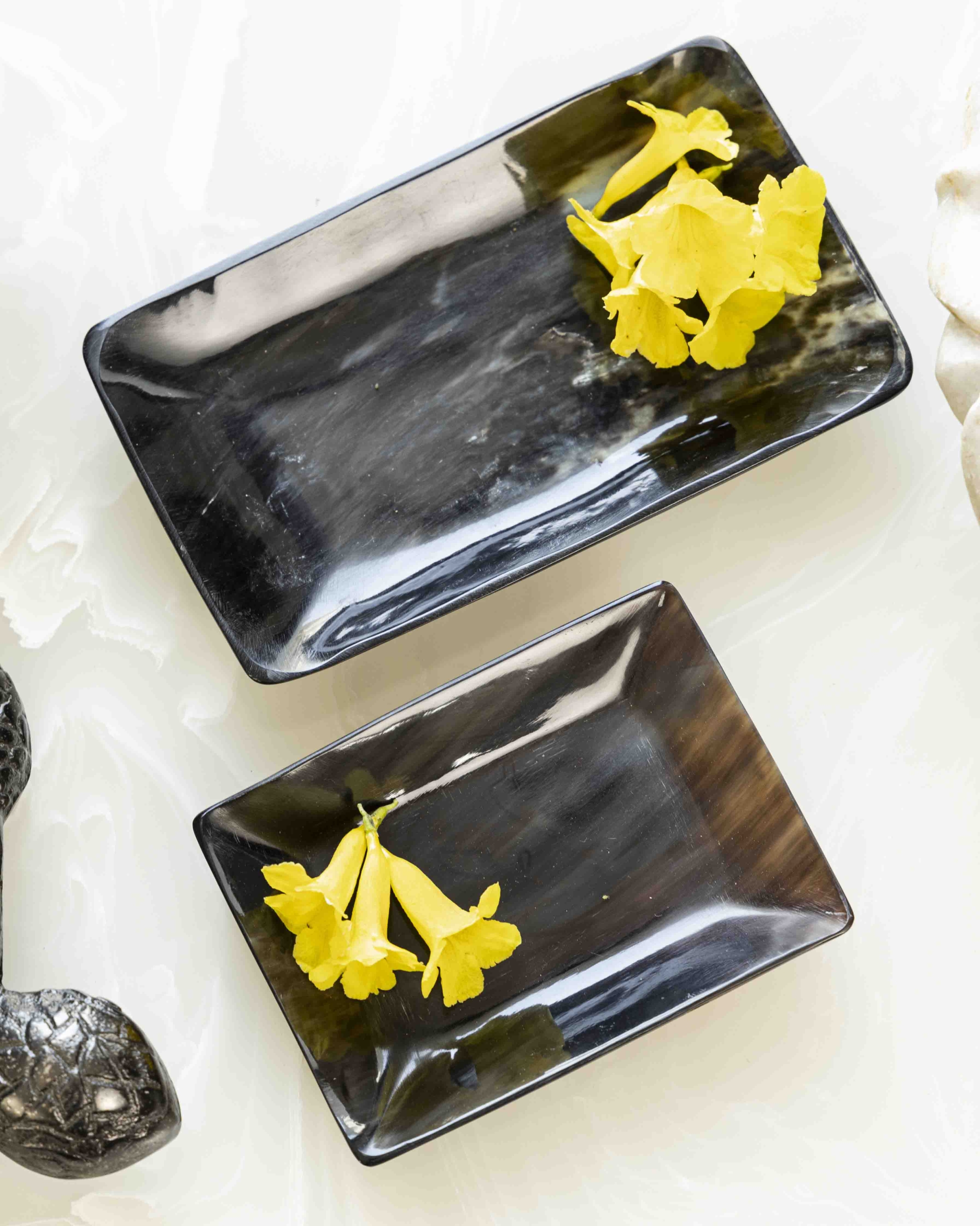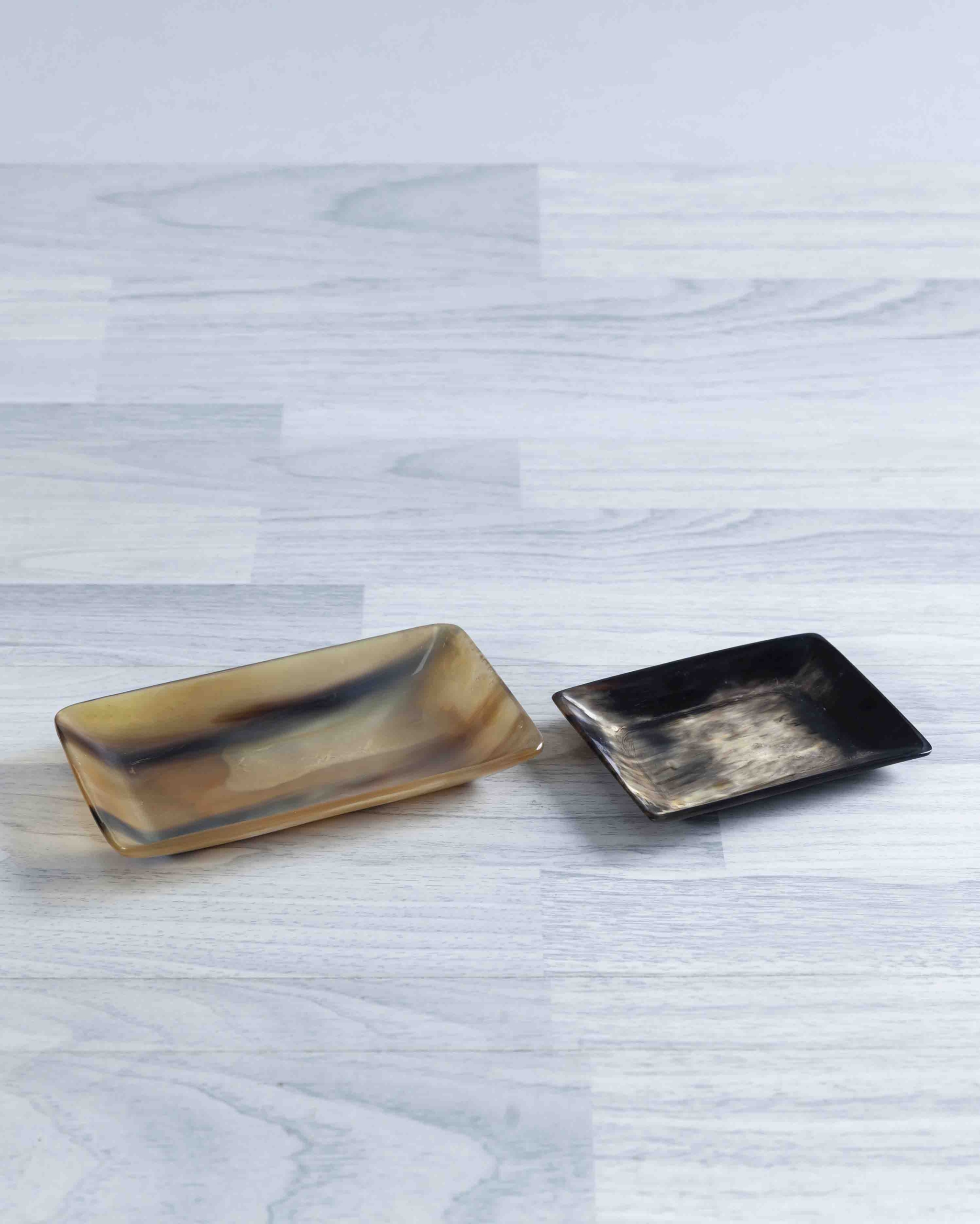 Handcrafted from the “BUBALIS BUBALUS” species, this collection has been artisanally made in the tradition of honoring life. In Southeast Asia, water buffalos are integral to the traditional village farming structure & have been domisticated for over 5,000 years. Once a member of the specie dies, each part of the animal is used. Use this set of 2 trinket set to keep your sunglasses, mail or keys on an entryway table. Due to the nature of the material, each trinket will be unique. Made of biodegradable materials, each product from this collection is designed keeping in mind a modern yet sustainable look.