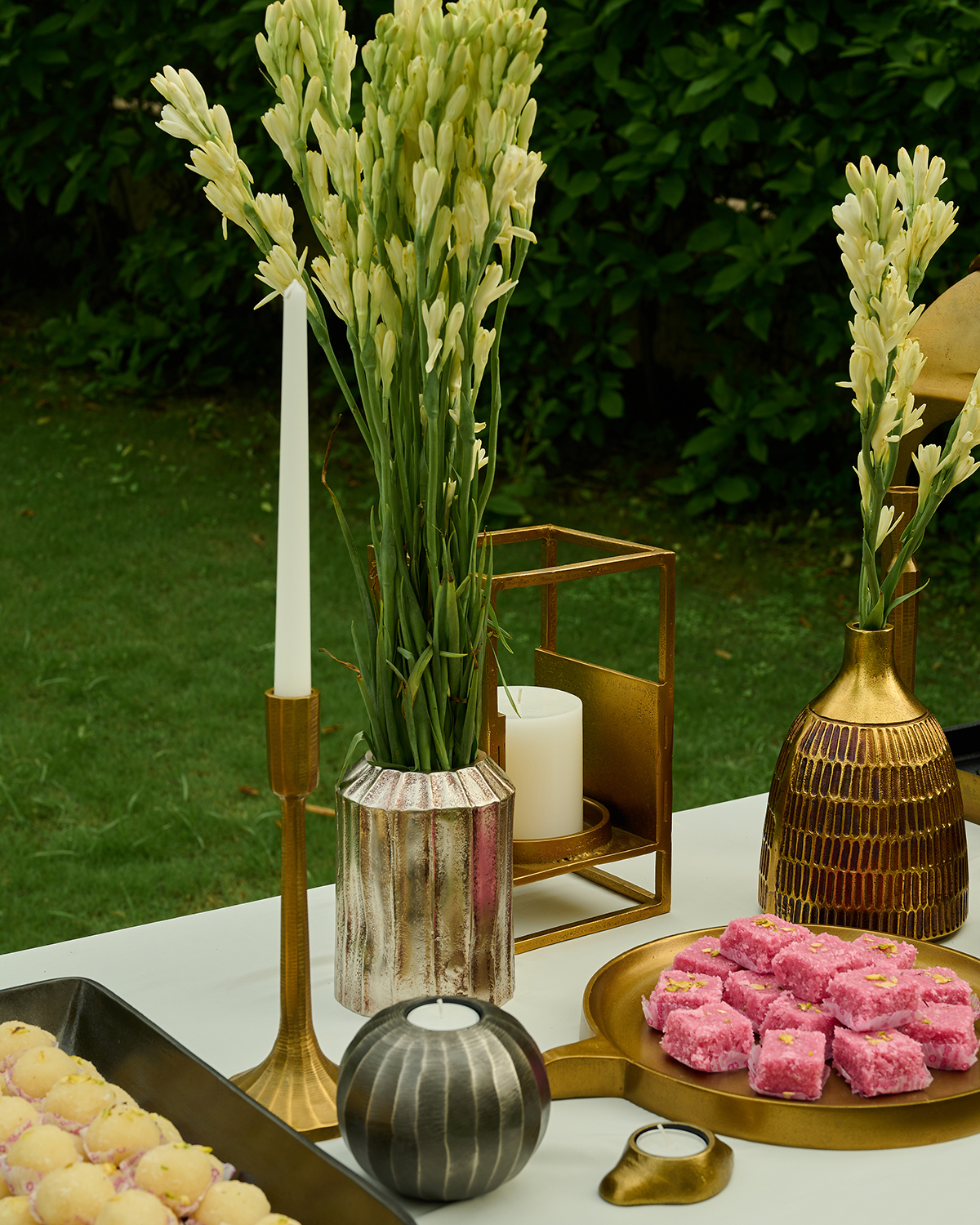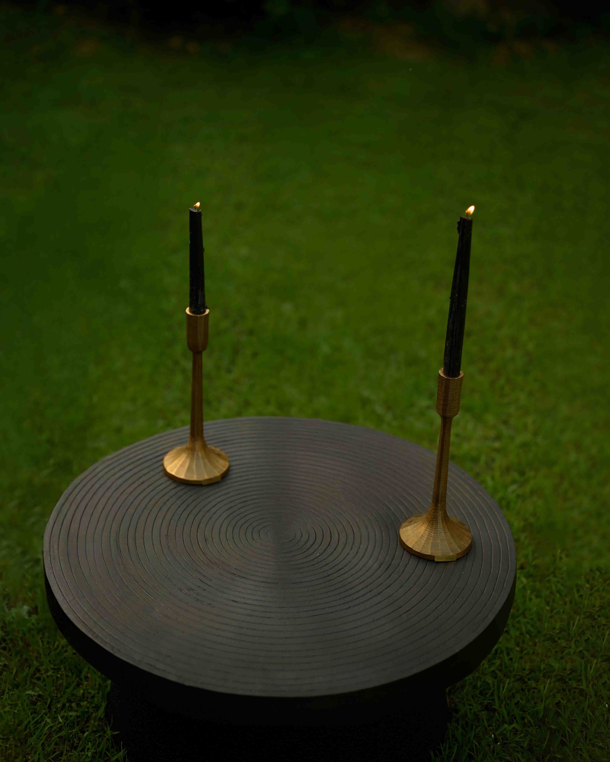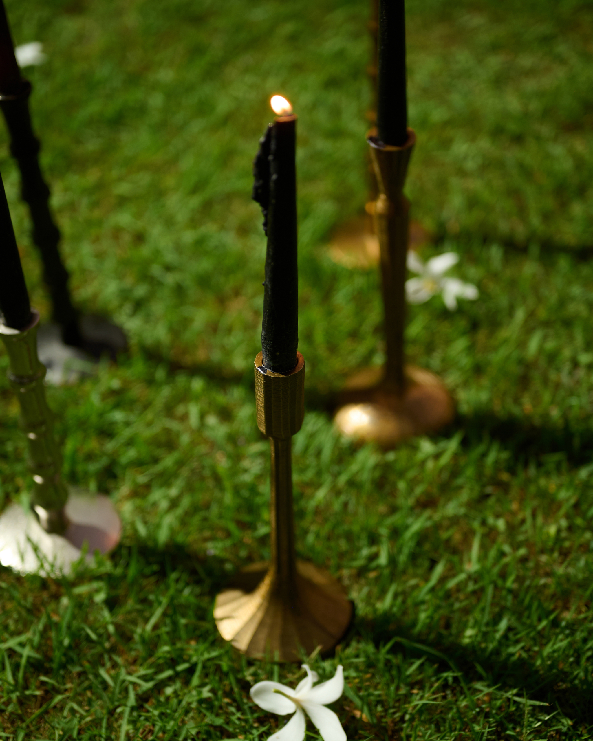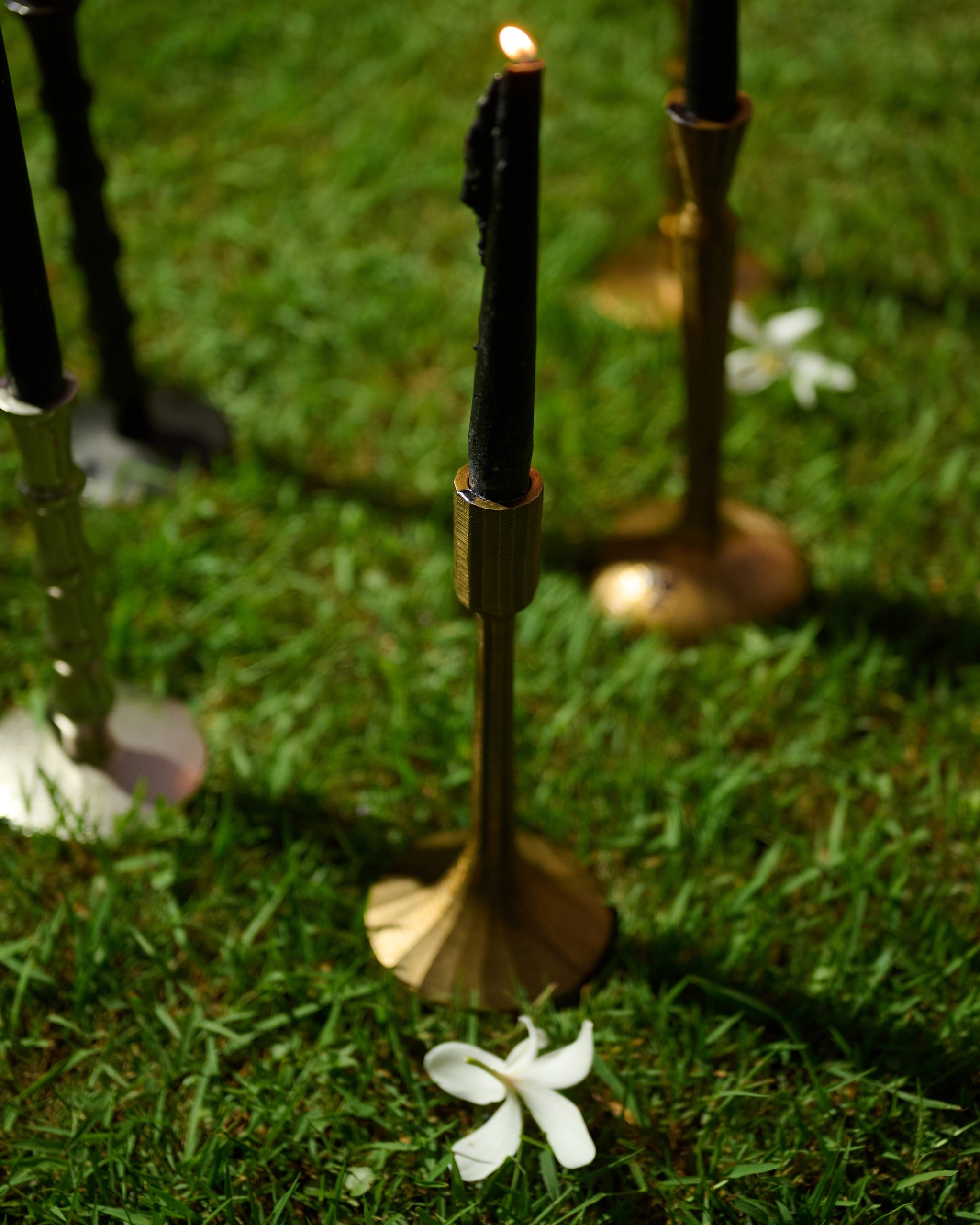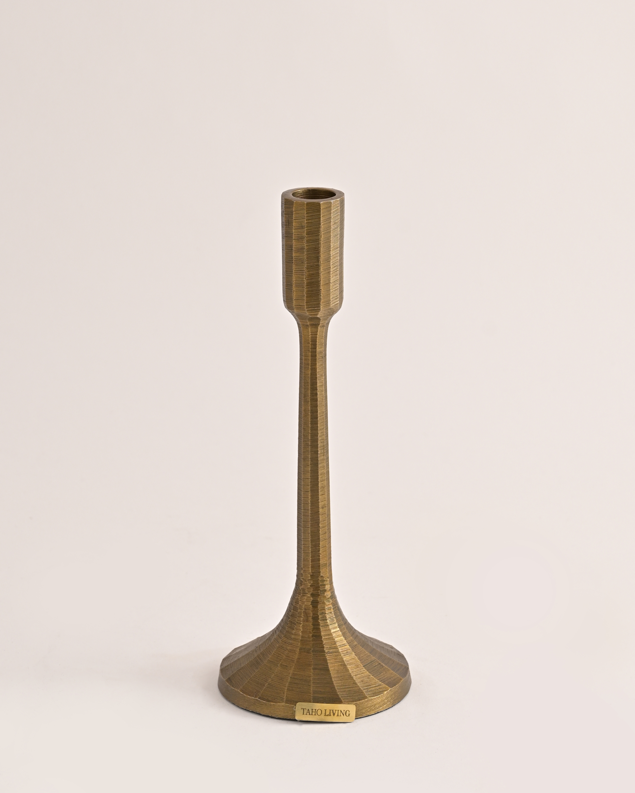 Shop Sanee Candle Holder in cast aluminium with brass antique finish a sculptural accent that elevates tablescapes and adds festive warmth to your home