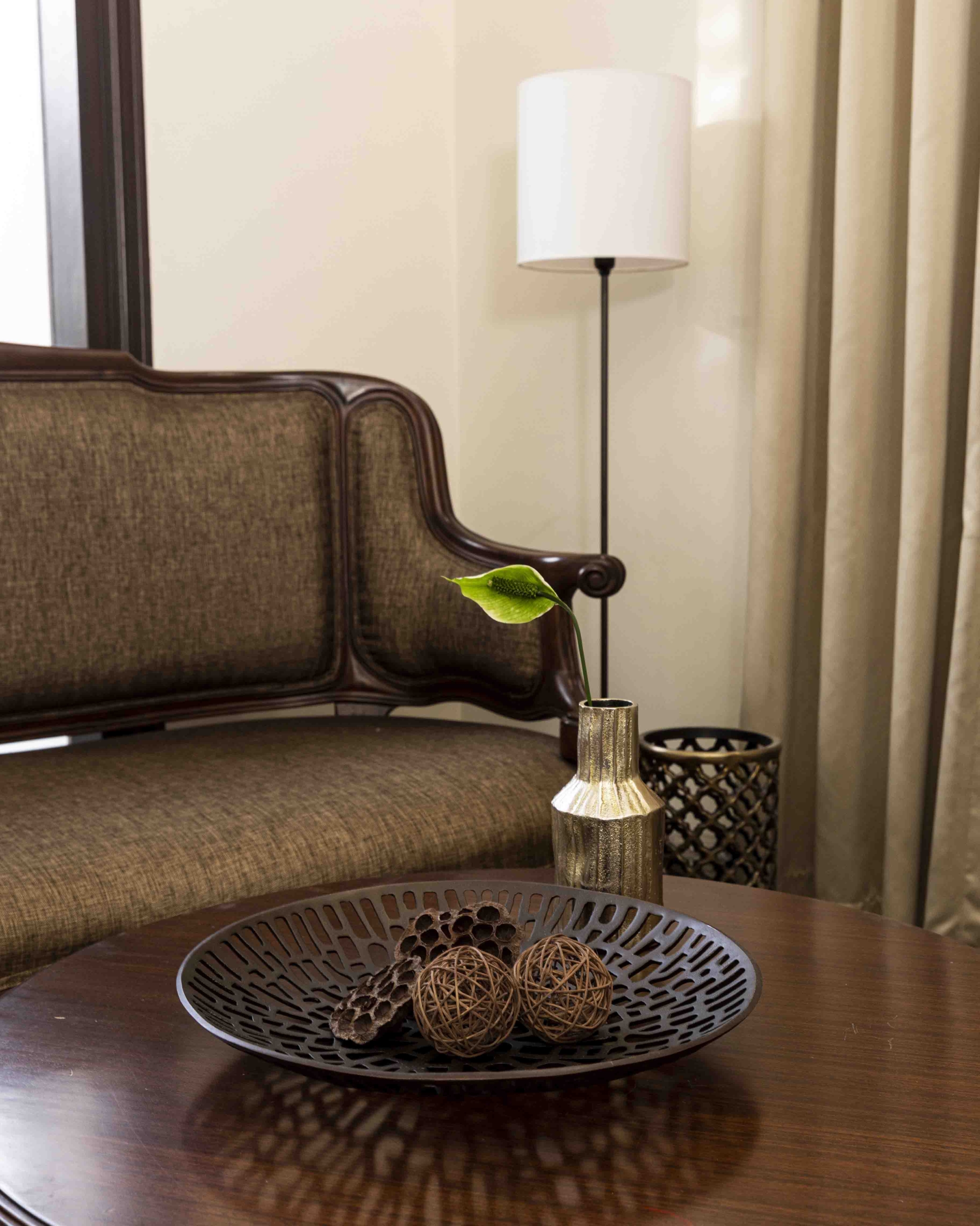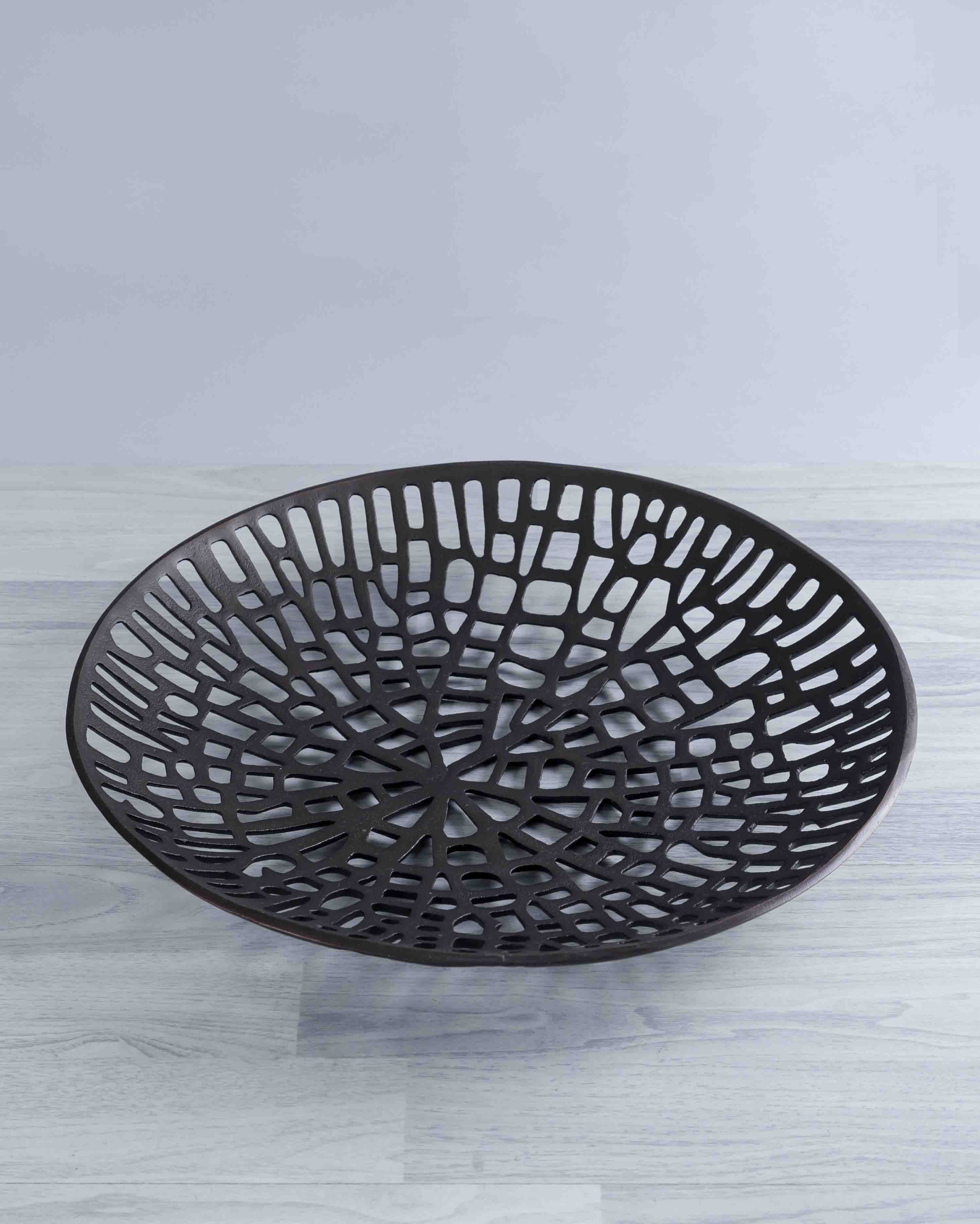 Inspired & reformed by a mid-Century antique, our Sirā Platter is surrounded by free-flowing antiquated copper perforations radiating a curving, geometric arrangment. The free-flowing perforations run along the frame of the platter to the very center resulting in a rather contemporary design. The centerpiece bowl sits well anywhere – indoors or outdoors & dons fruits or decoratives perfectly.