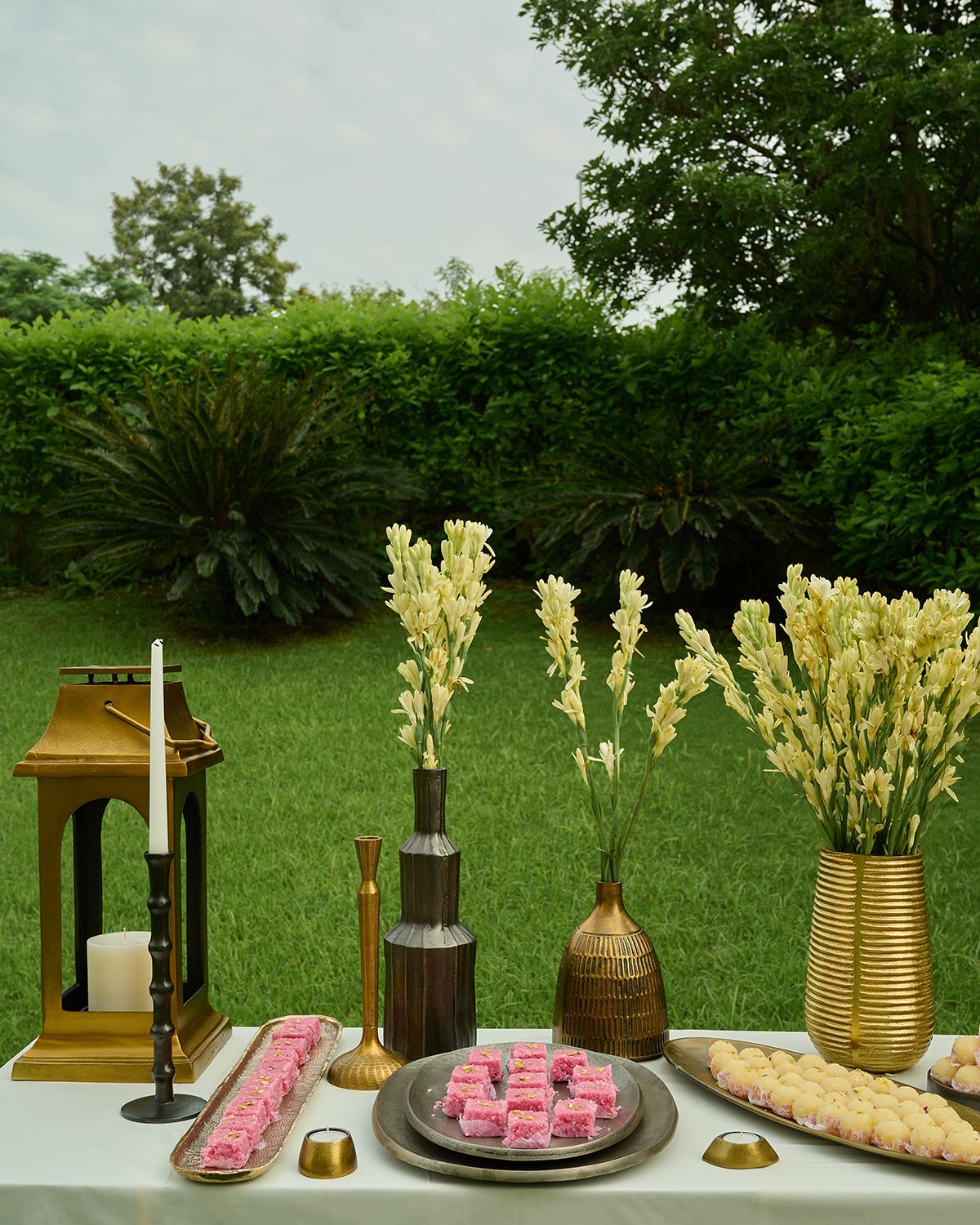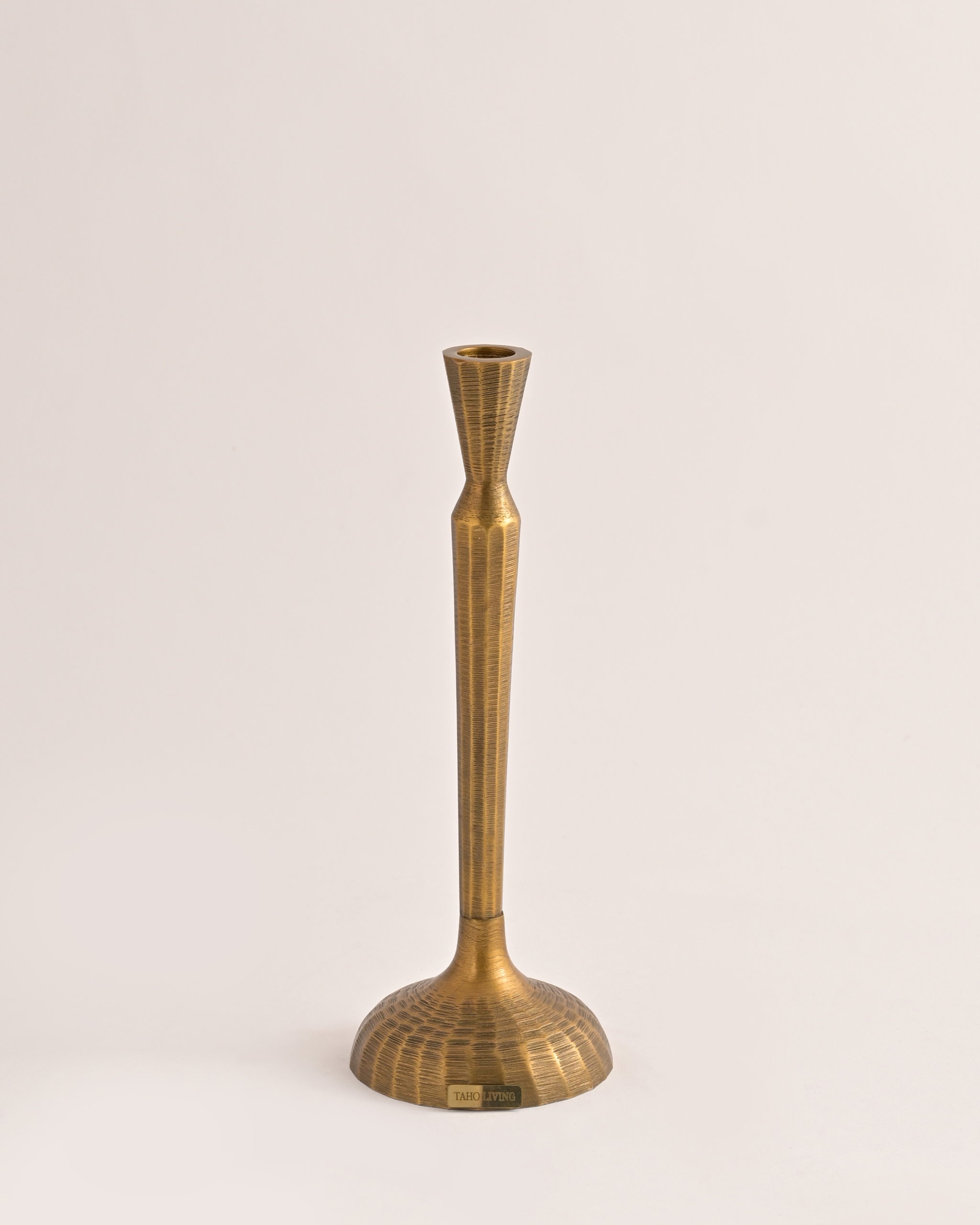 Shop Tvisa Candle Holder in cast aluminium with brass antique finish a tall accent piece ideal for console styling dining tables and festive centerpieces