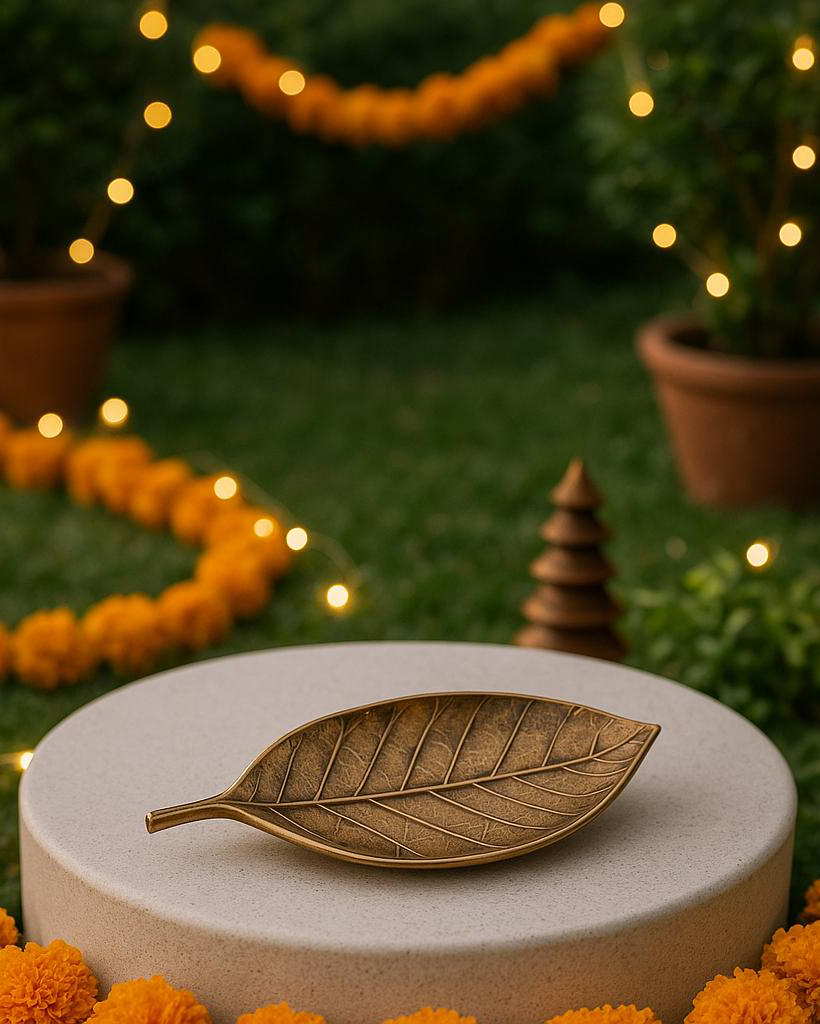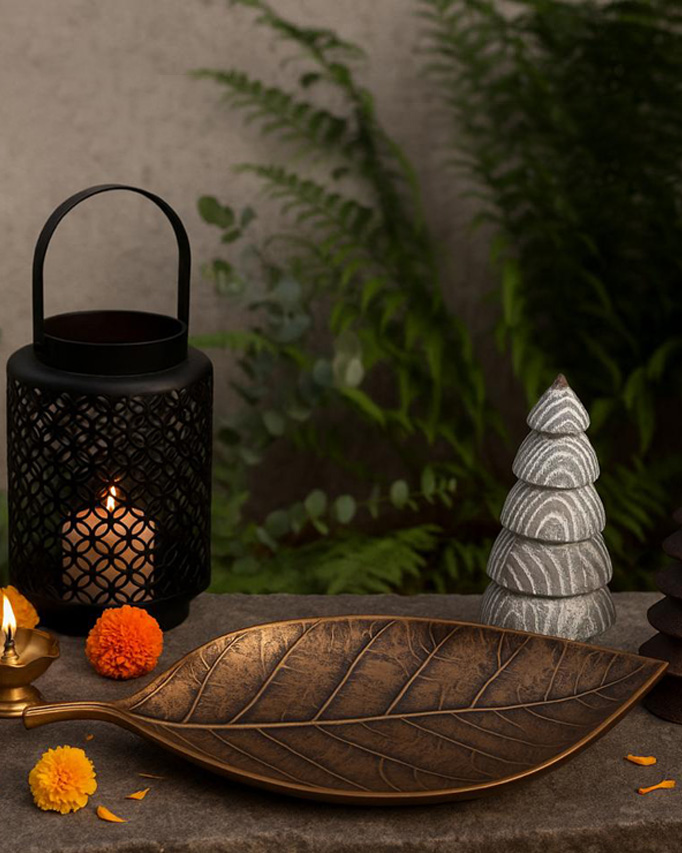 The Zari Tray, crafted from cast aluminium, features a stunning leaf-inspired design that beautifully blends nature’s elegance with contemporary craftsmanship. Its flowing lines and detailed veining mimic the organic form of a leaf, making it a captivating decorative and functional piece.