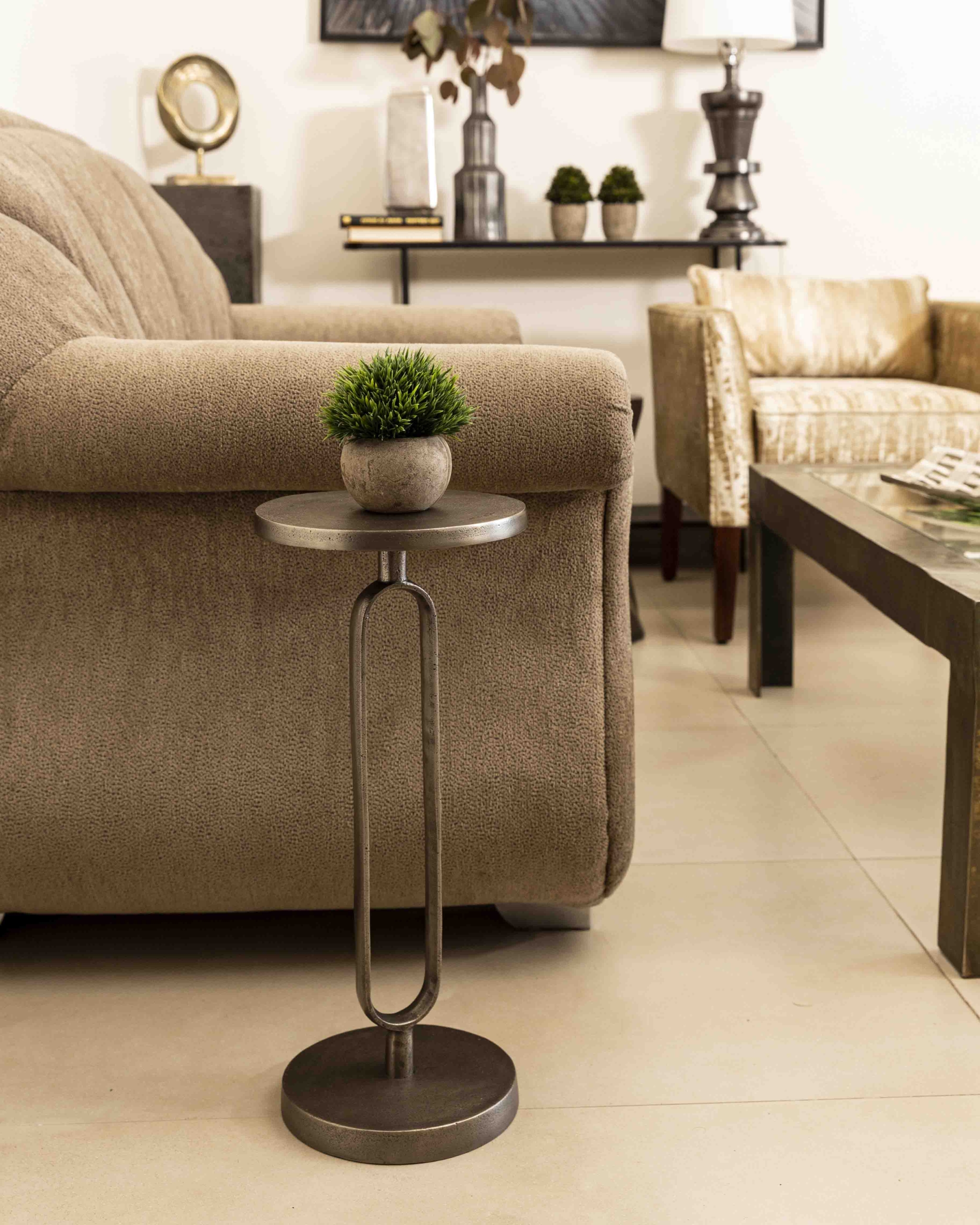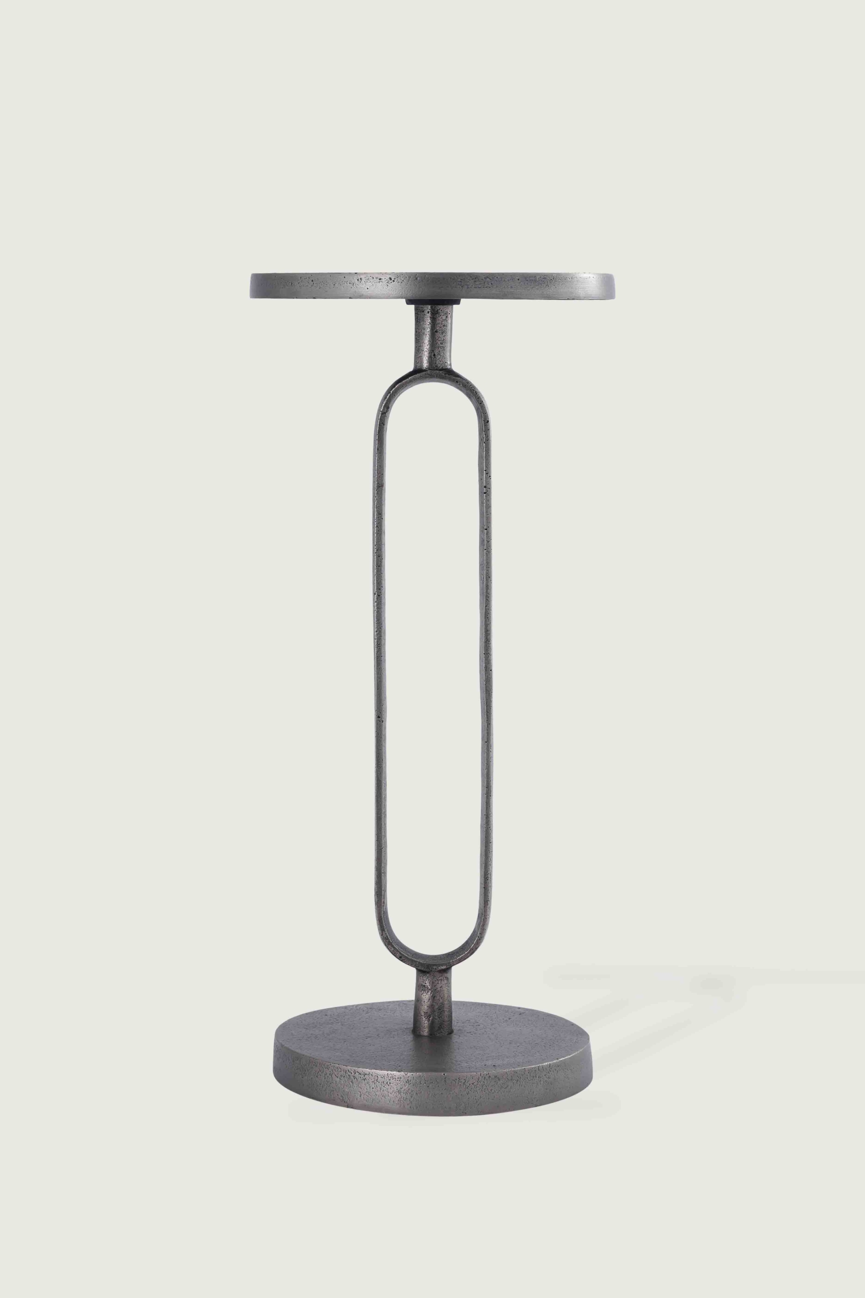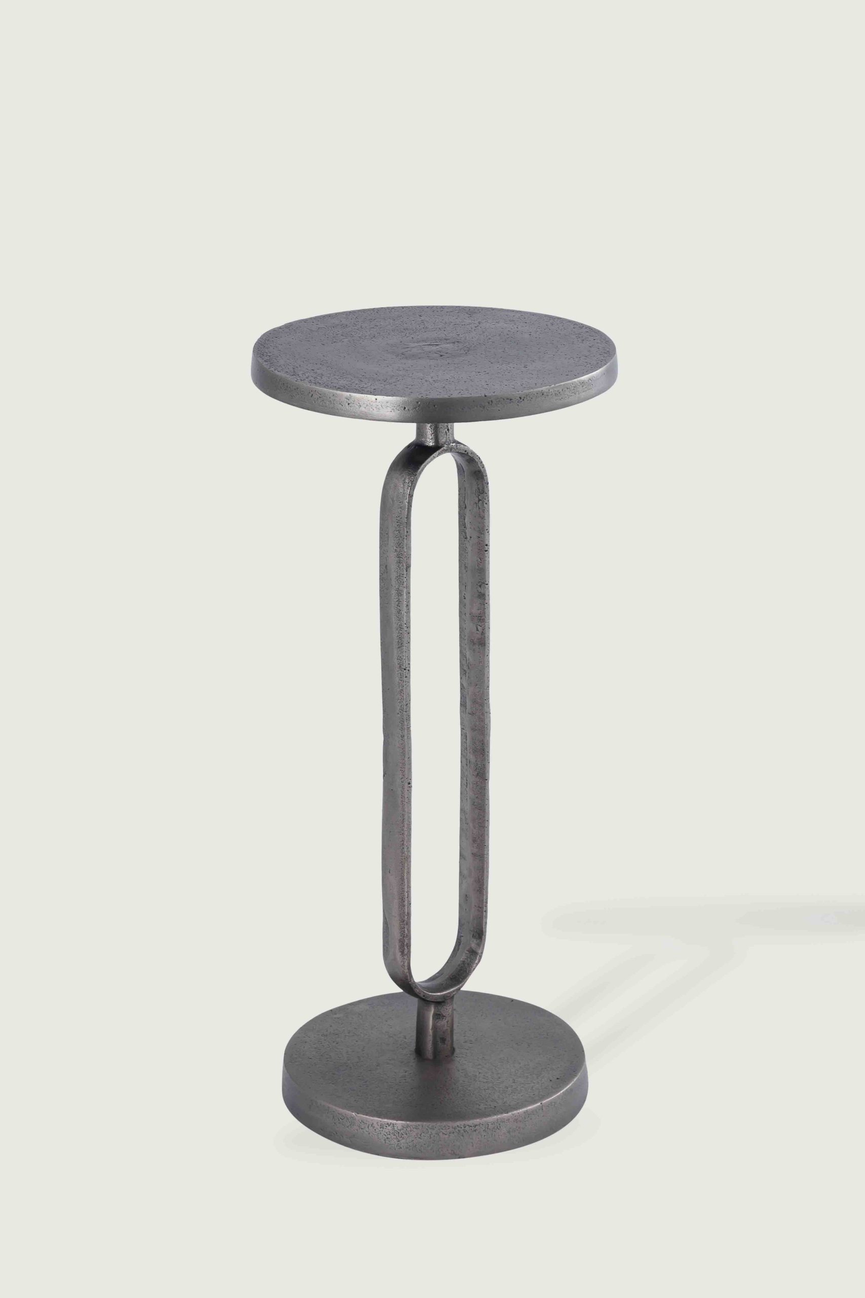 As splendid as a work of modern art, Diono simplifies the drink table with striking austerity. ed in aluminum, the perfectly proportioned table balances a collared top on an elognated oval ring.