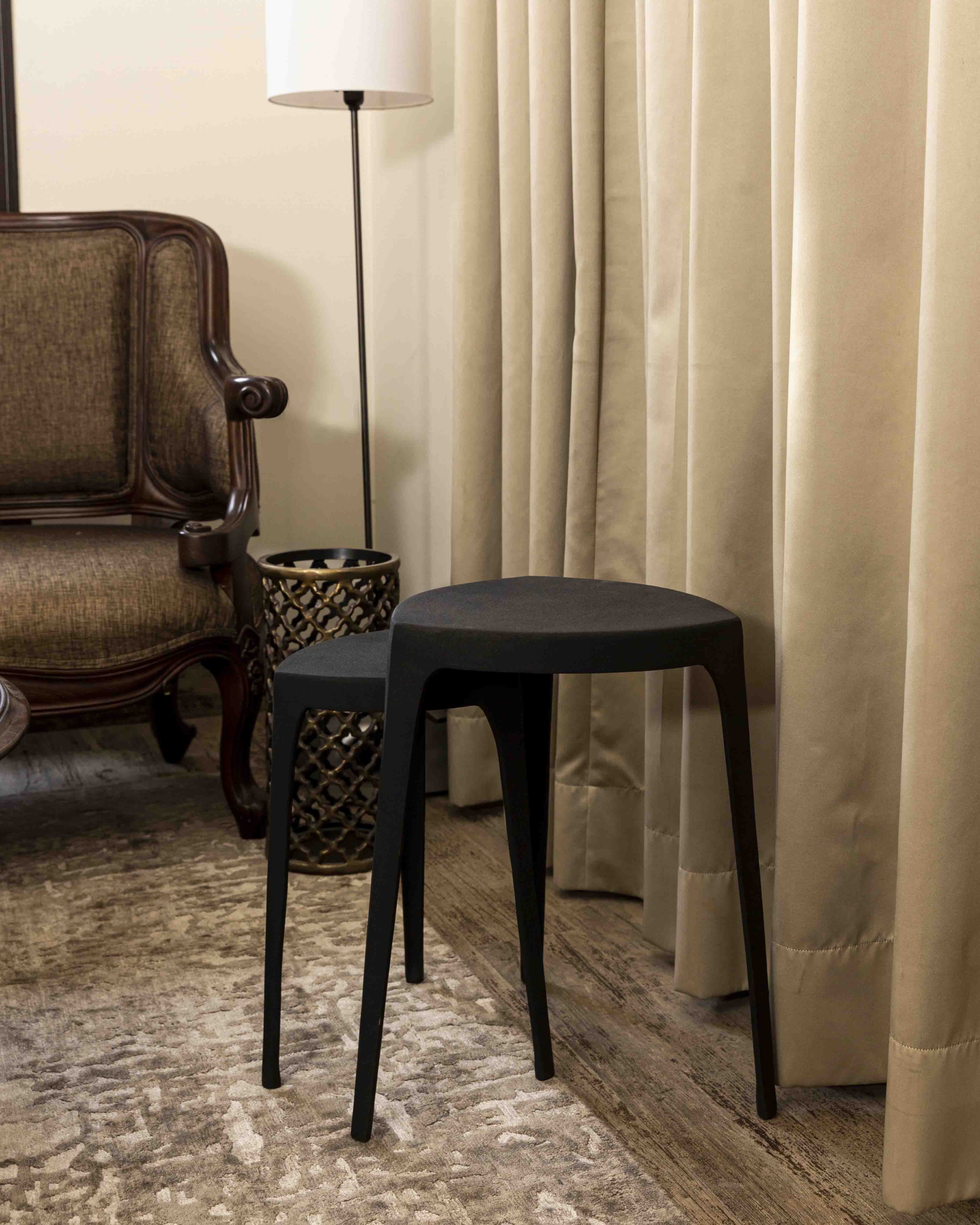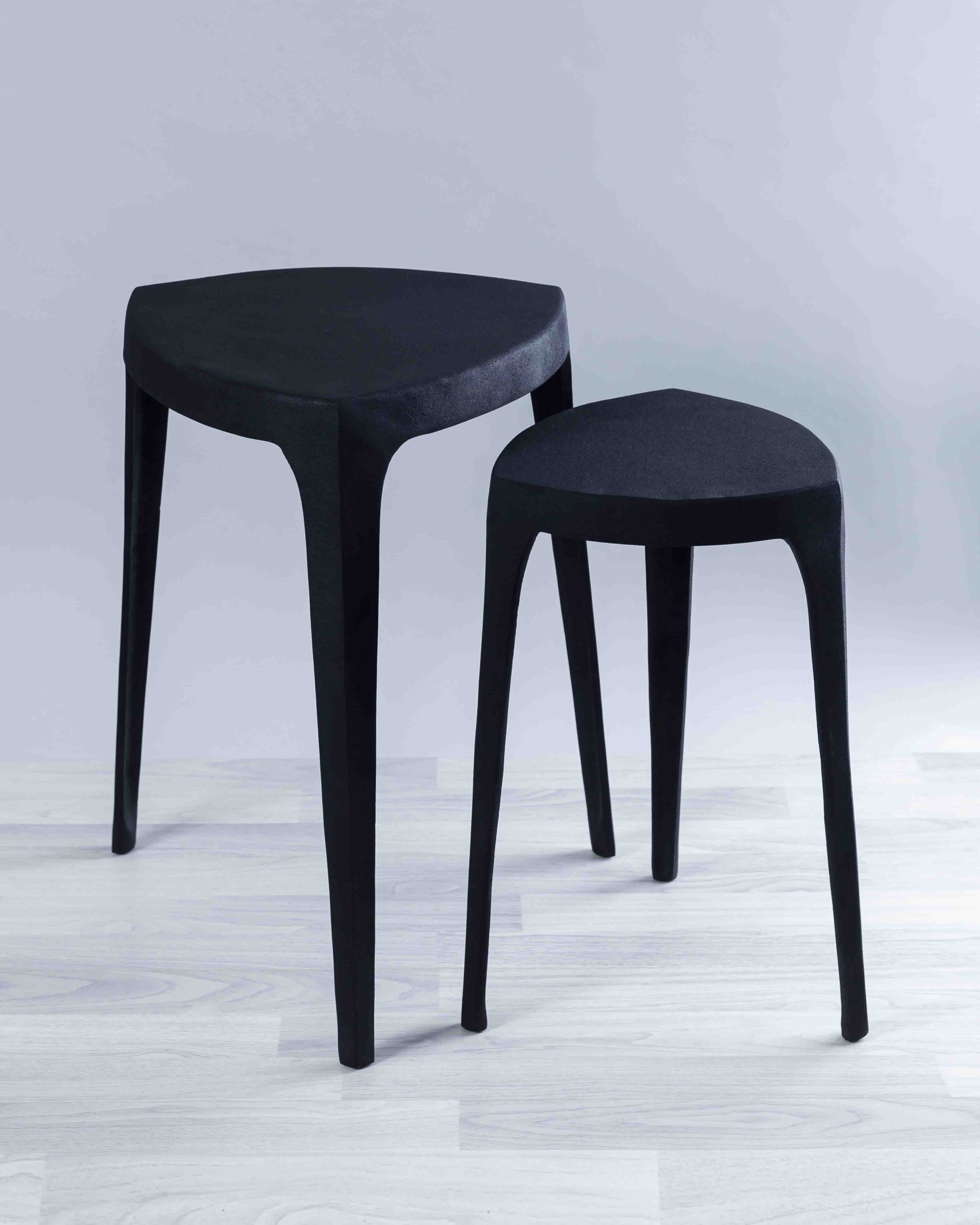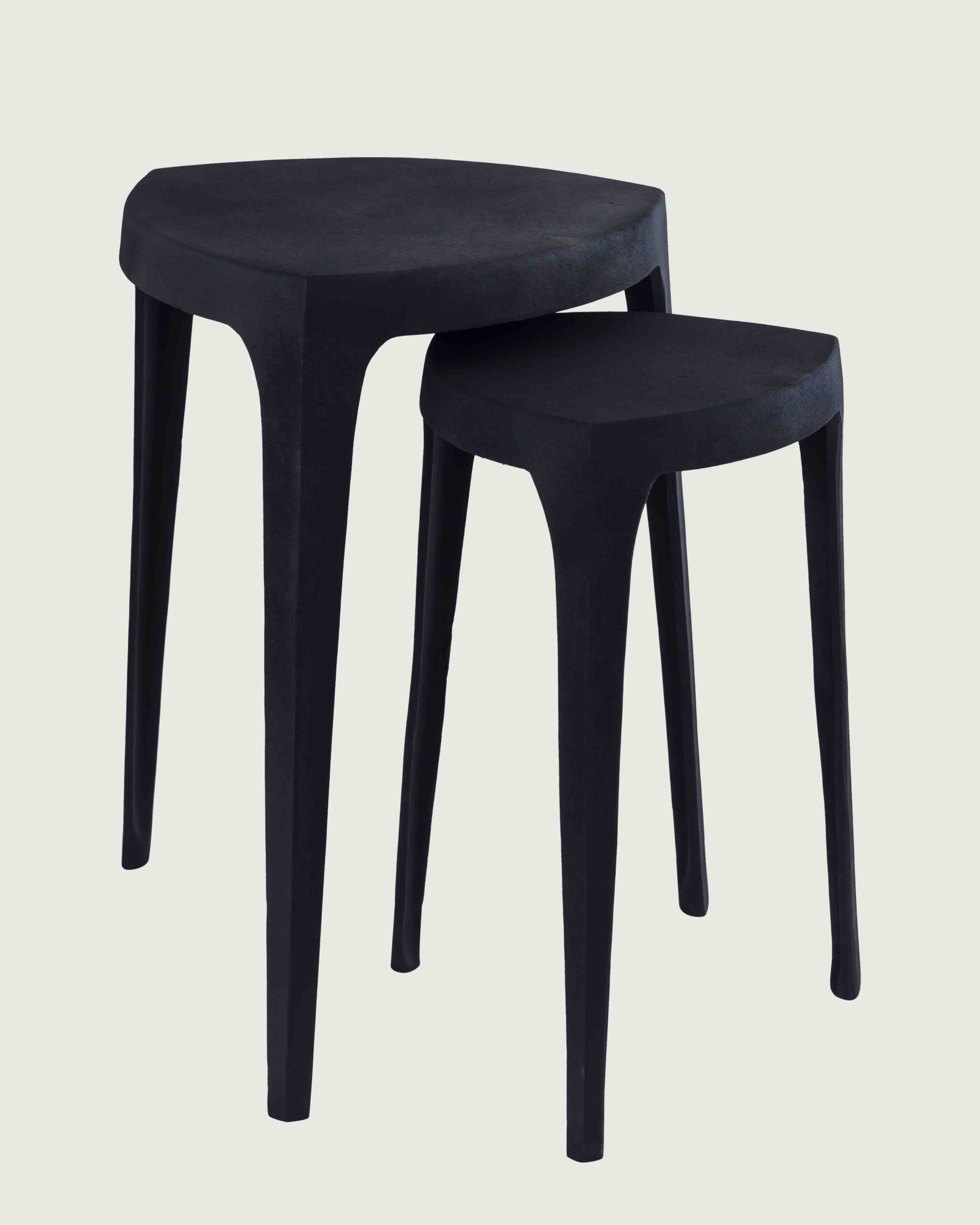 The Ereb set of 2 Counter Table features streamlined styling in pure aluminum with a contemporary matte black finish.