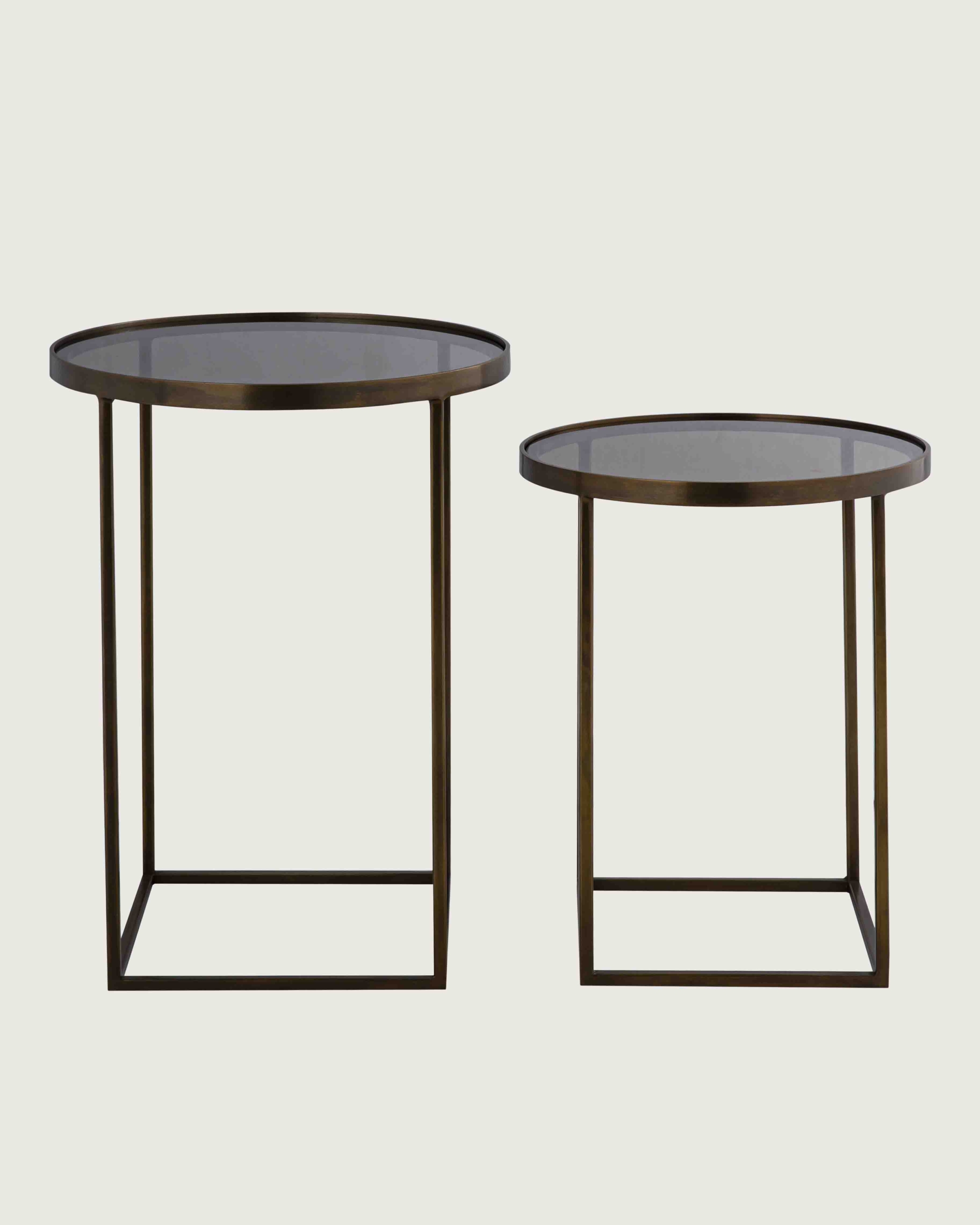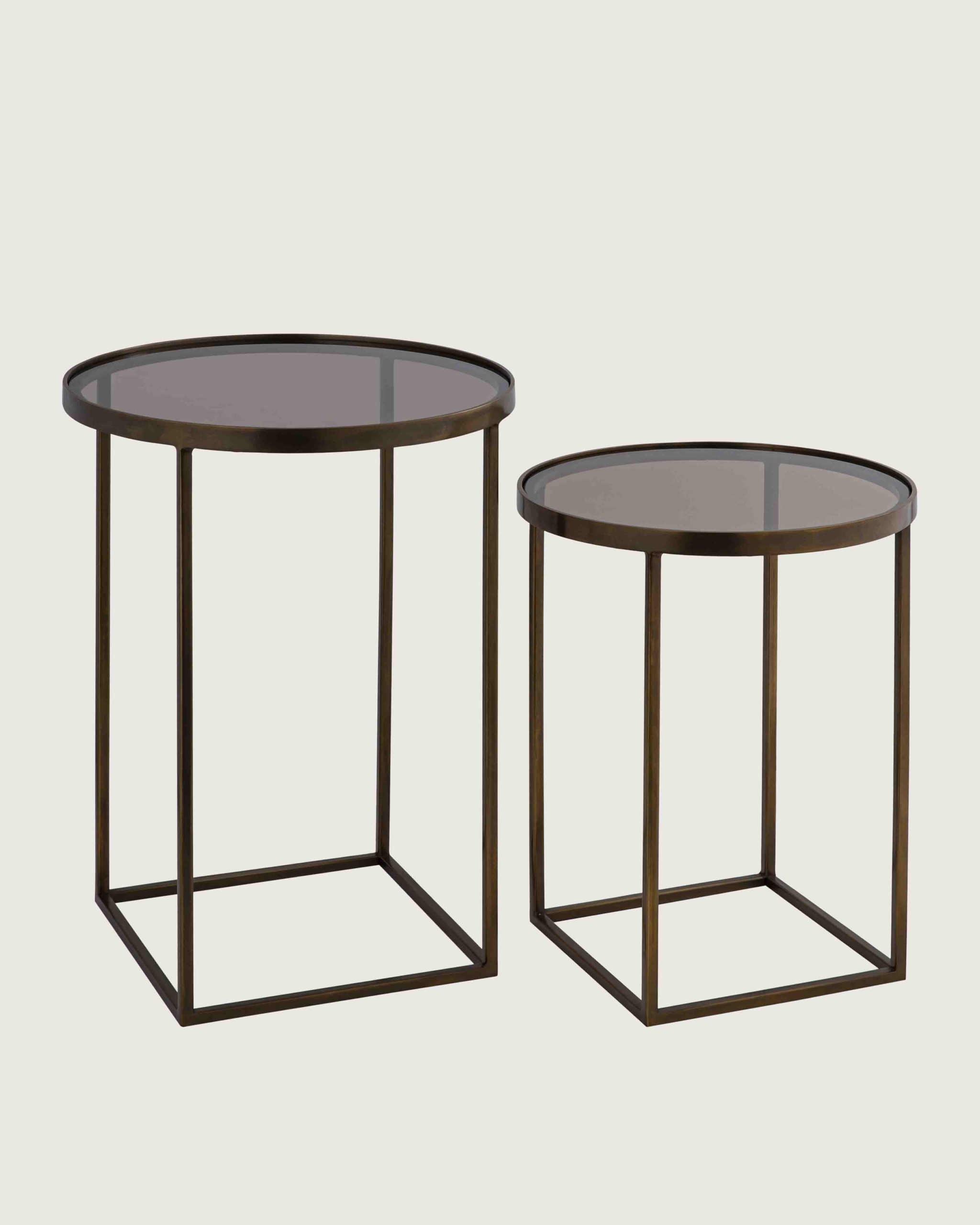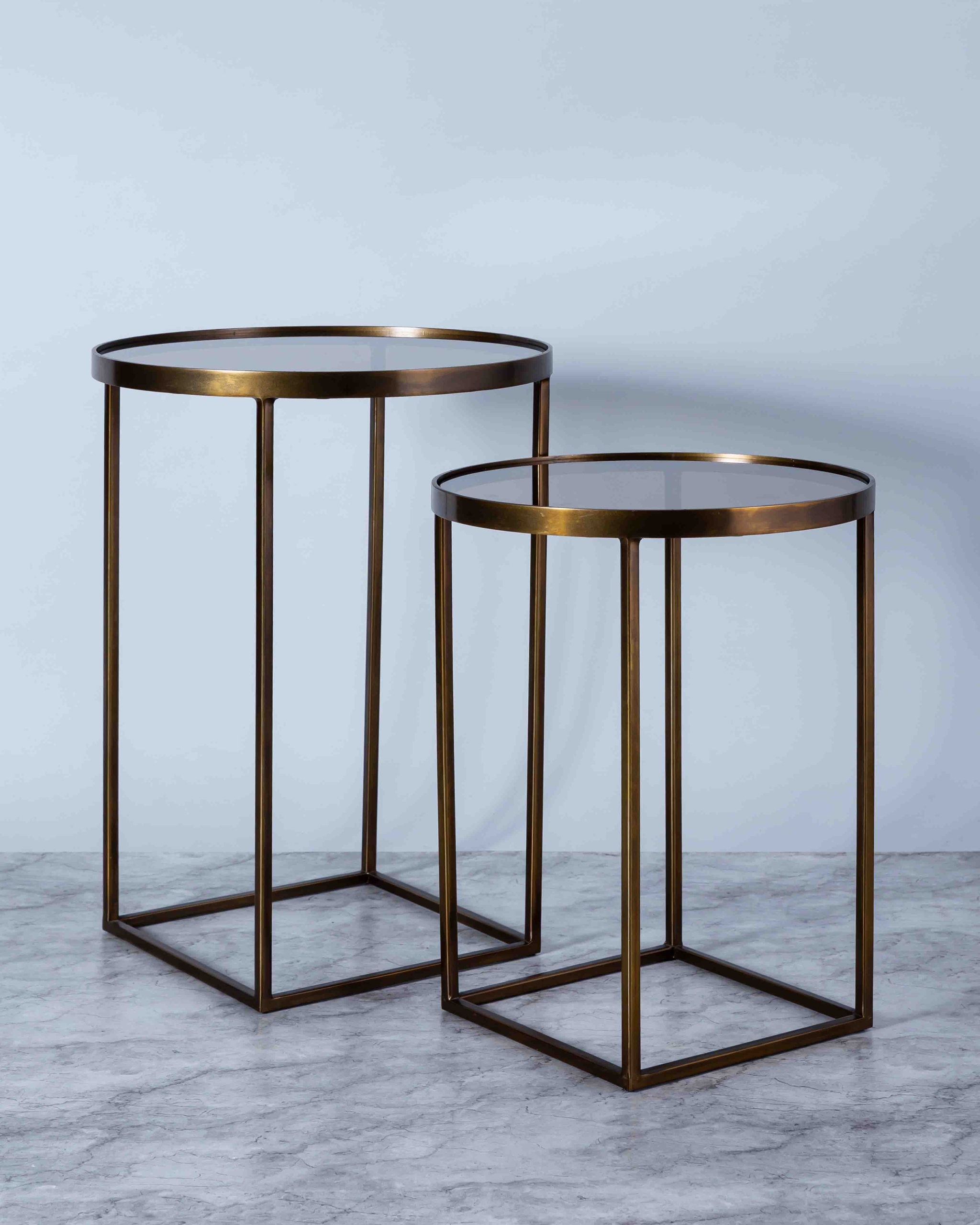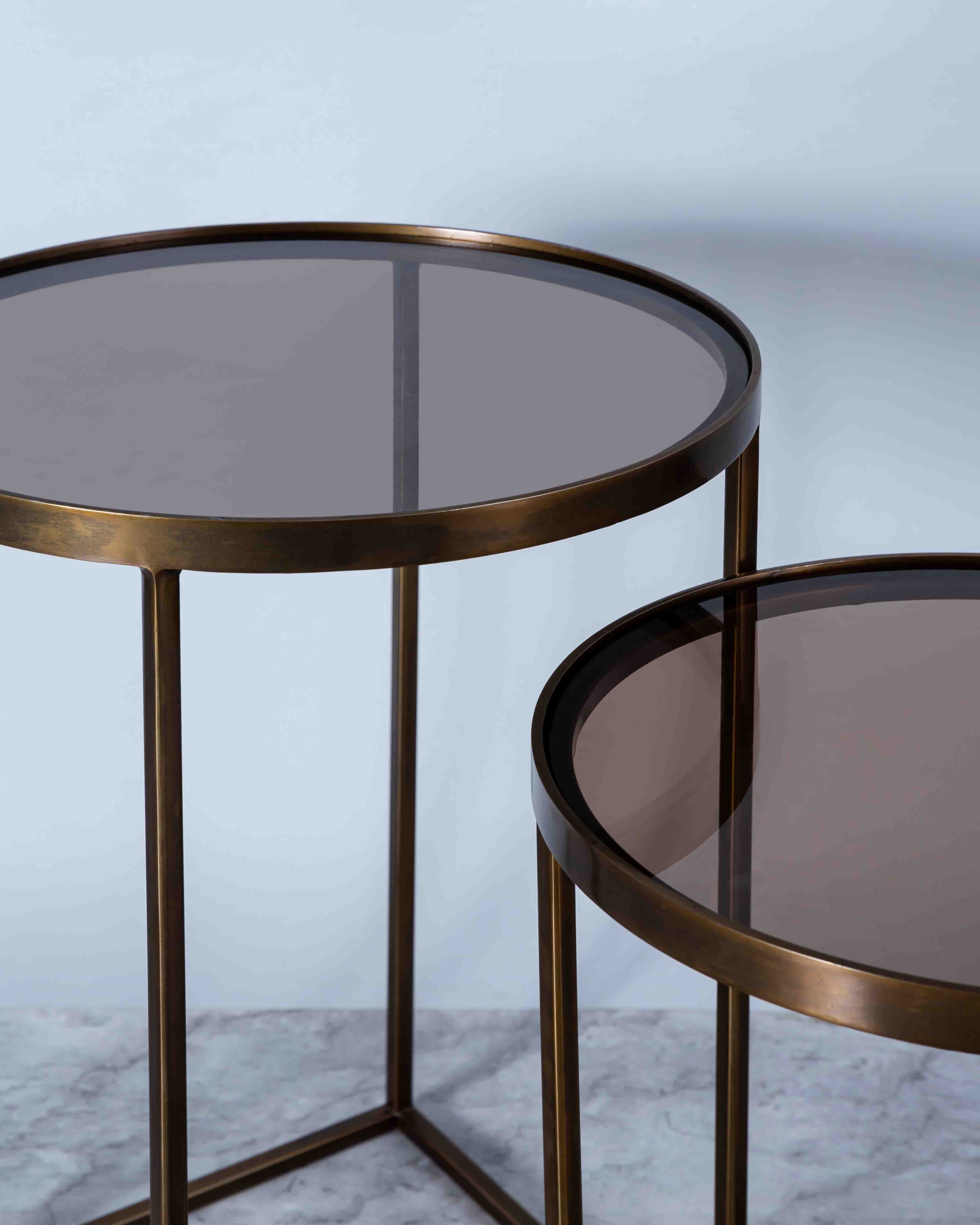 Material: STEEL & GLASS Finish: BRASS ANTQ AND BLACK SMOKE GLASS