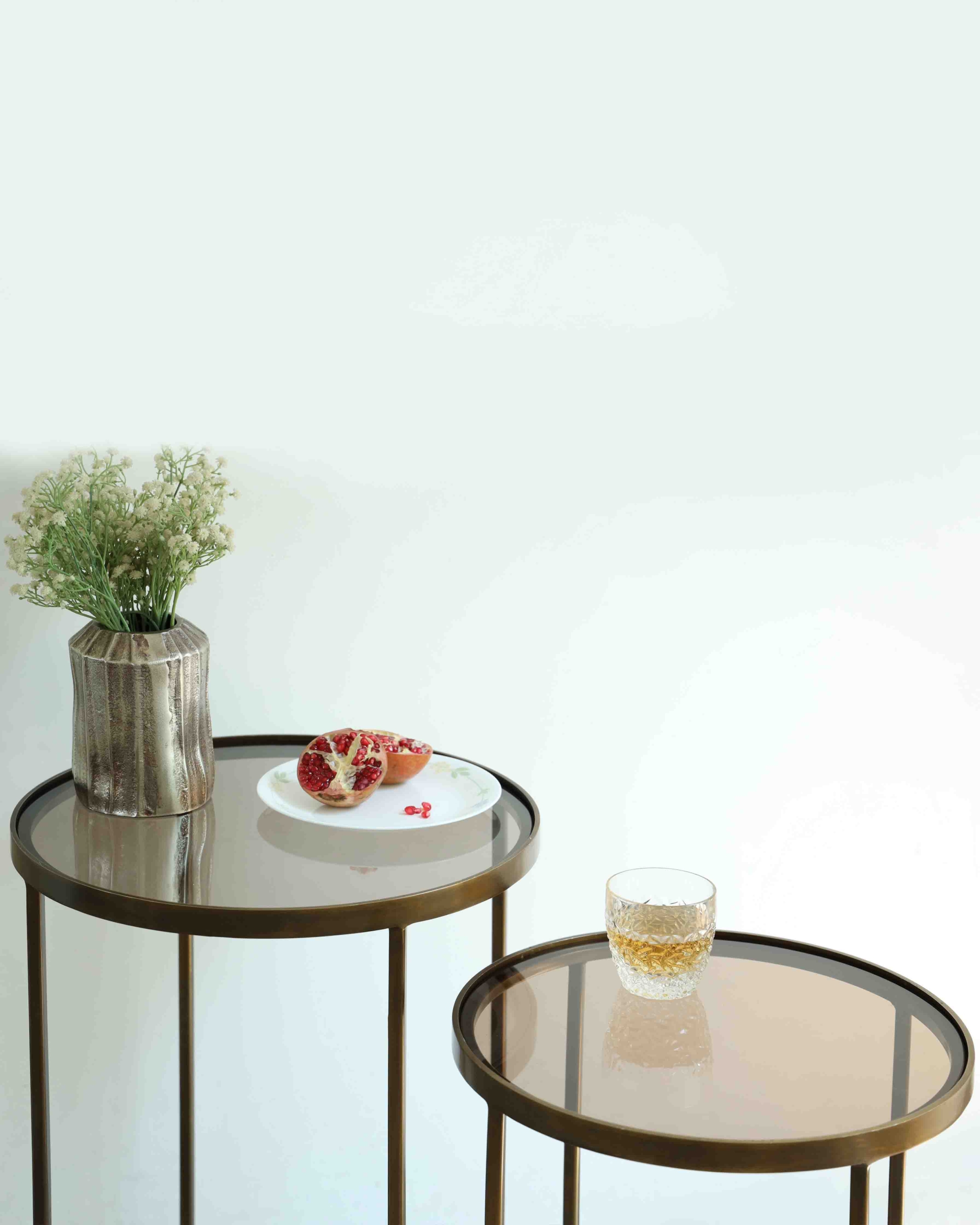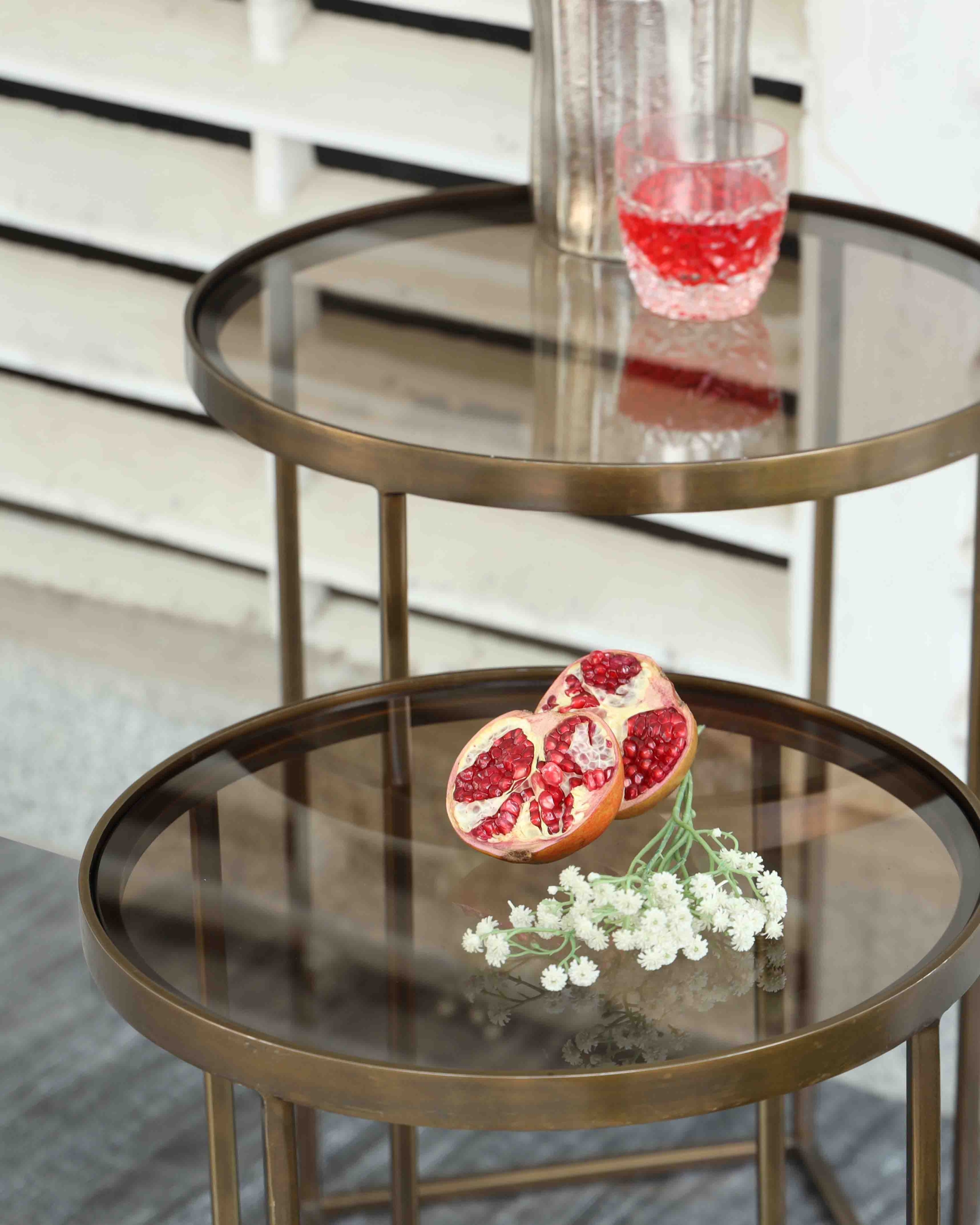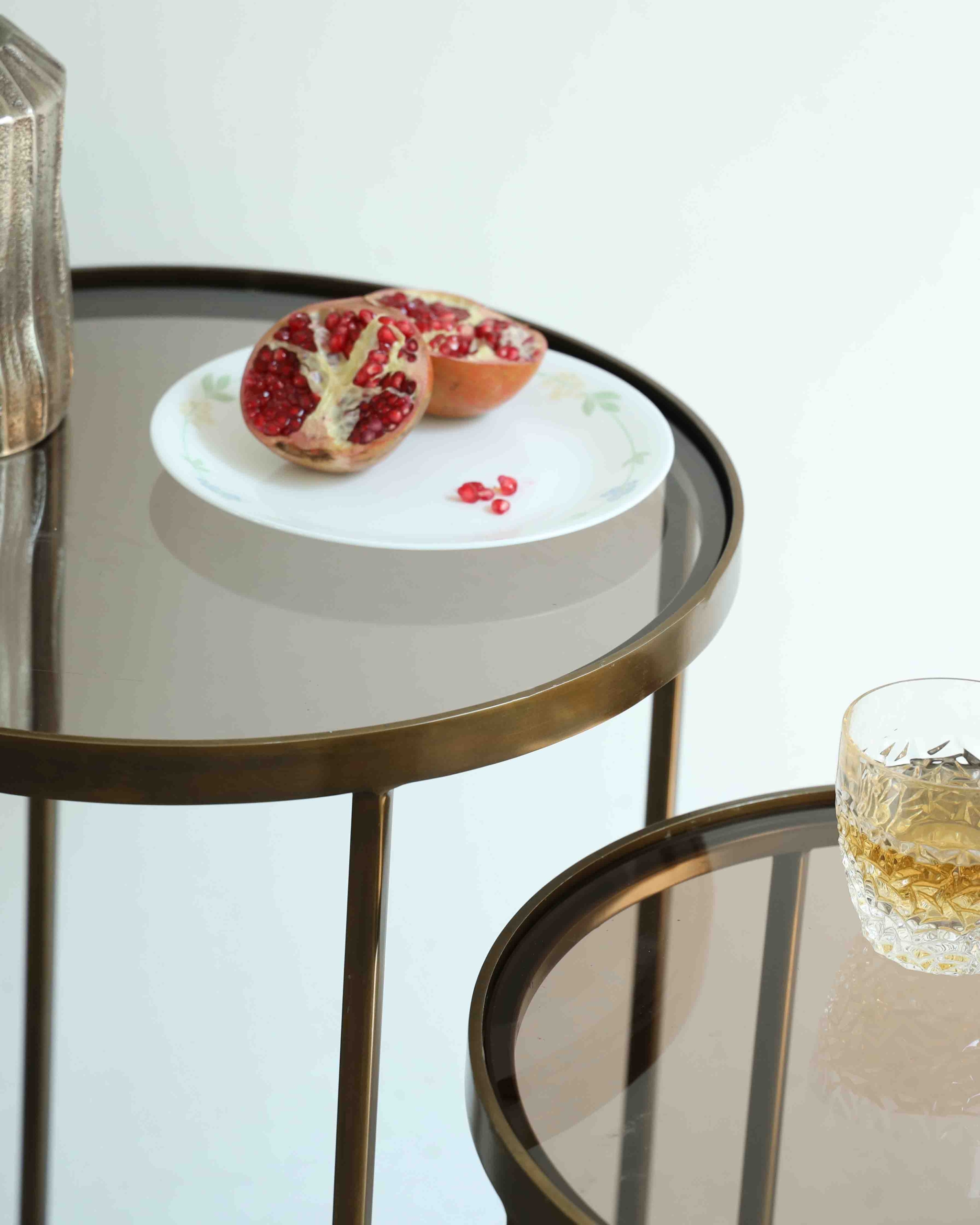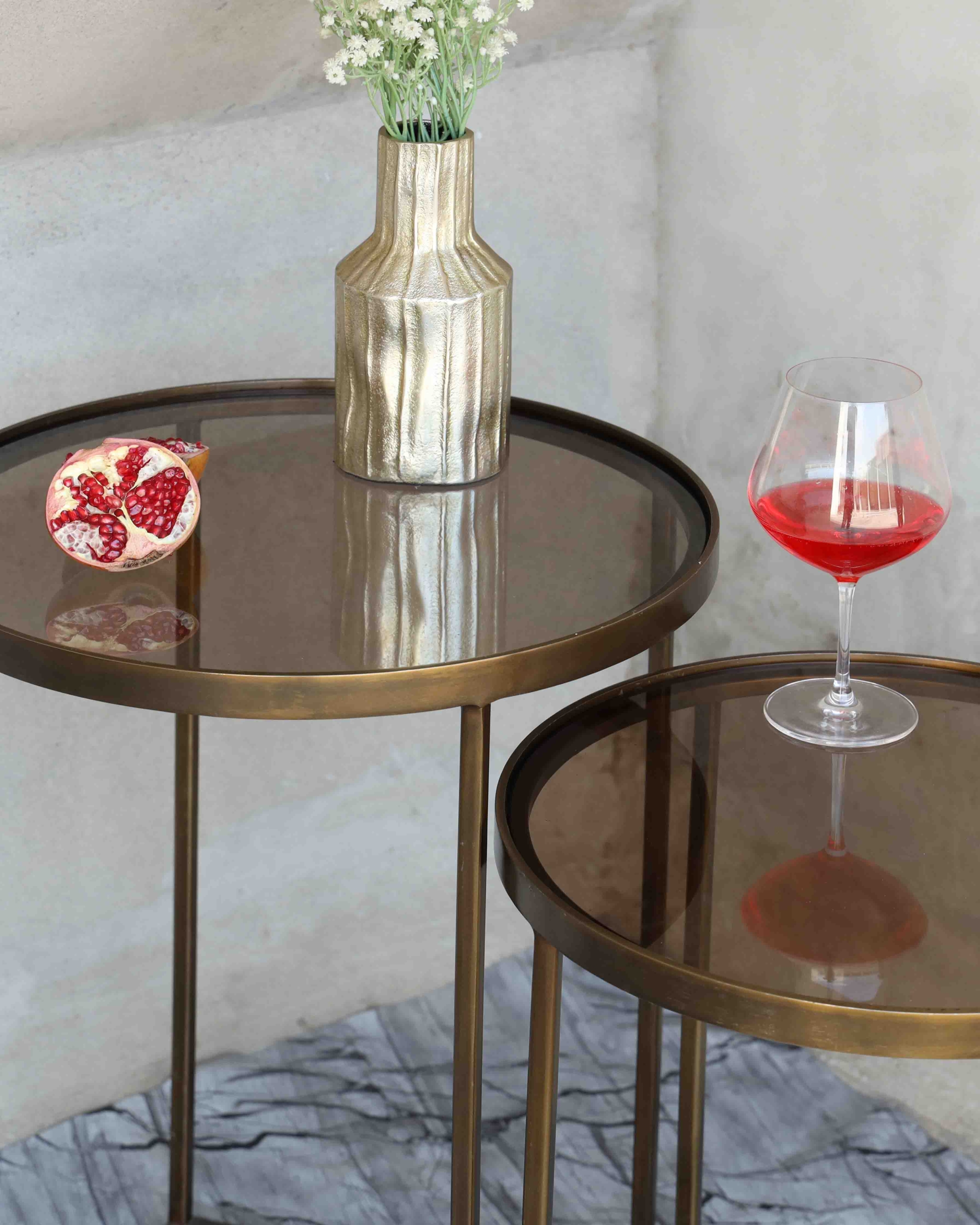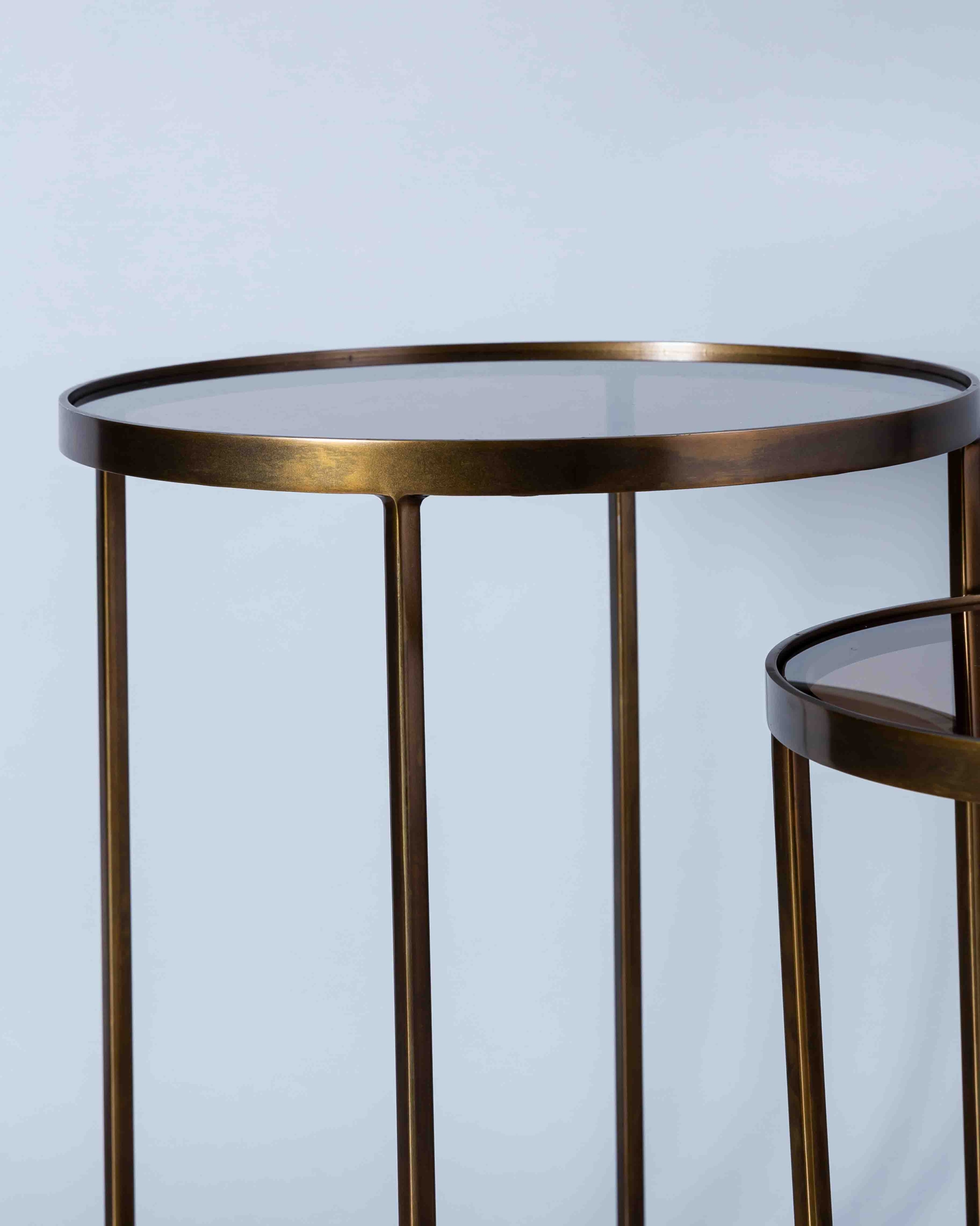 Material: STEEL & GLASS Finish: BRASS ANTQ AND BLACK SMOKE GLASS