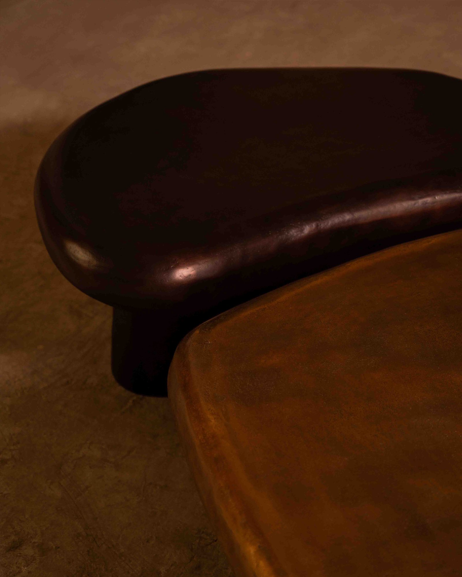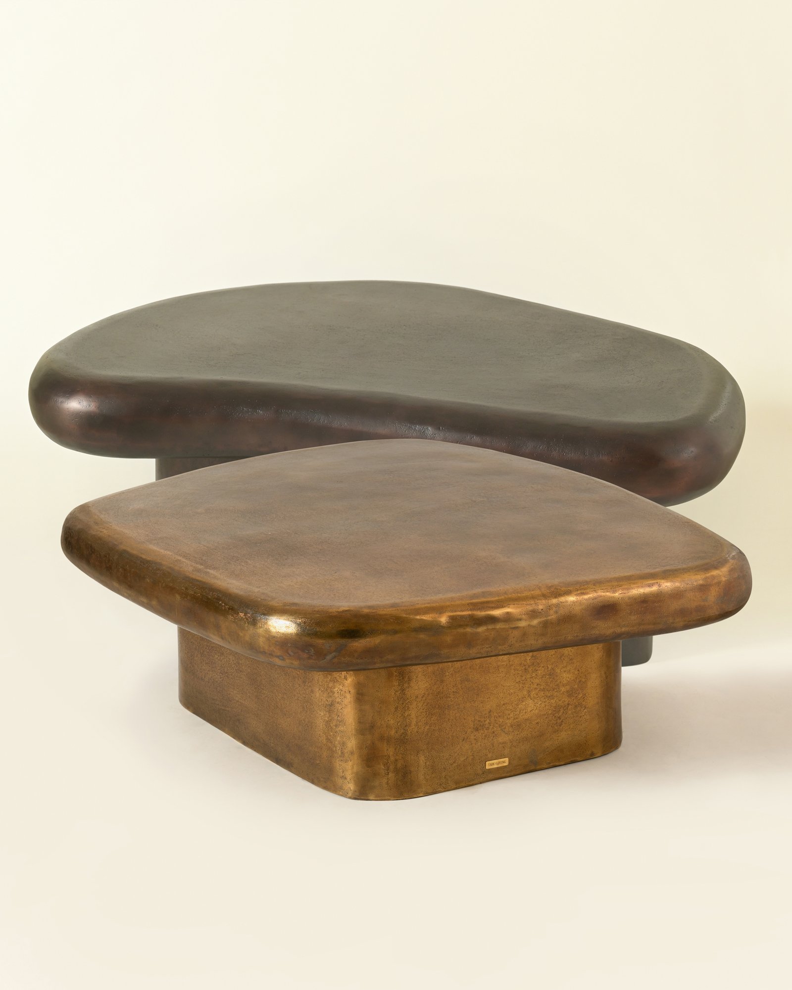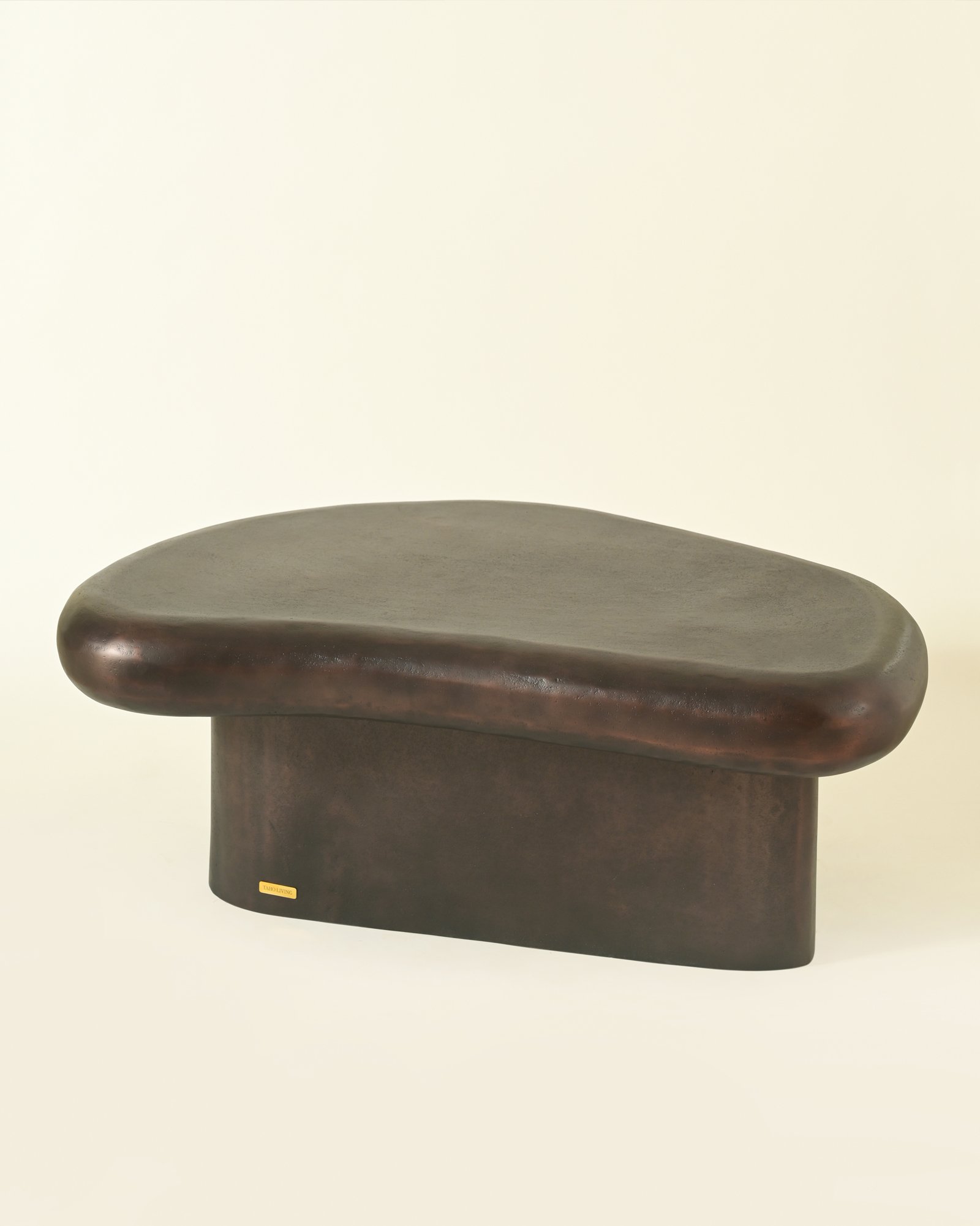 The Oculus Coffee Table takes its form from softened geometry, low and expansive, with edges that feel shaped rather than drawn. Cast in aluminium and finished in antique brass, the surface carries natural undulations that catch light unevenly. Designed to sit close to the ground, it anchors a living space with weight and presence while allowing surrounding elements to breathe.