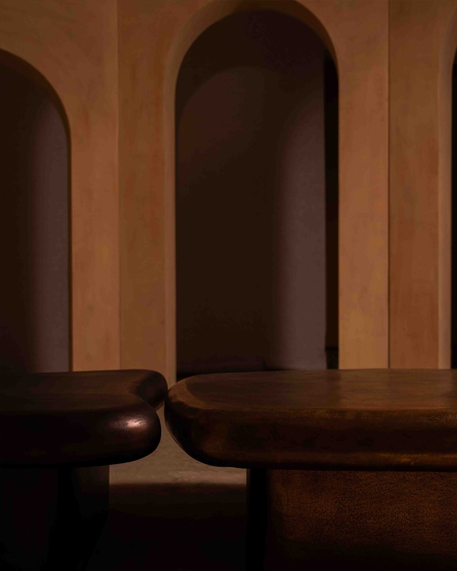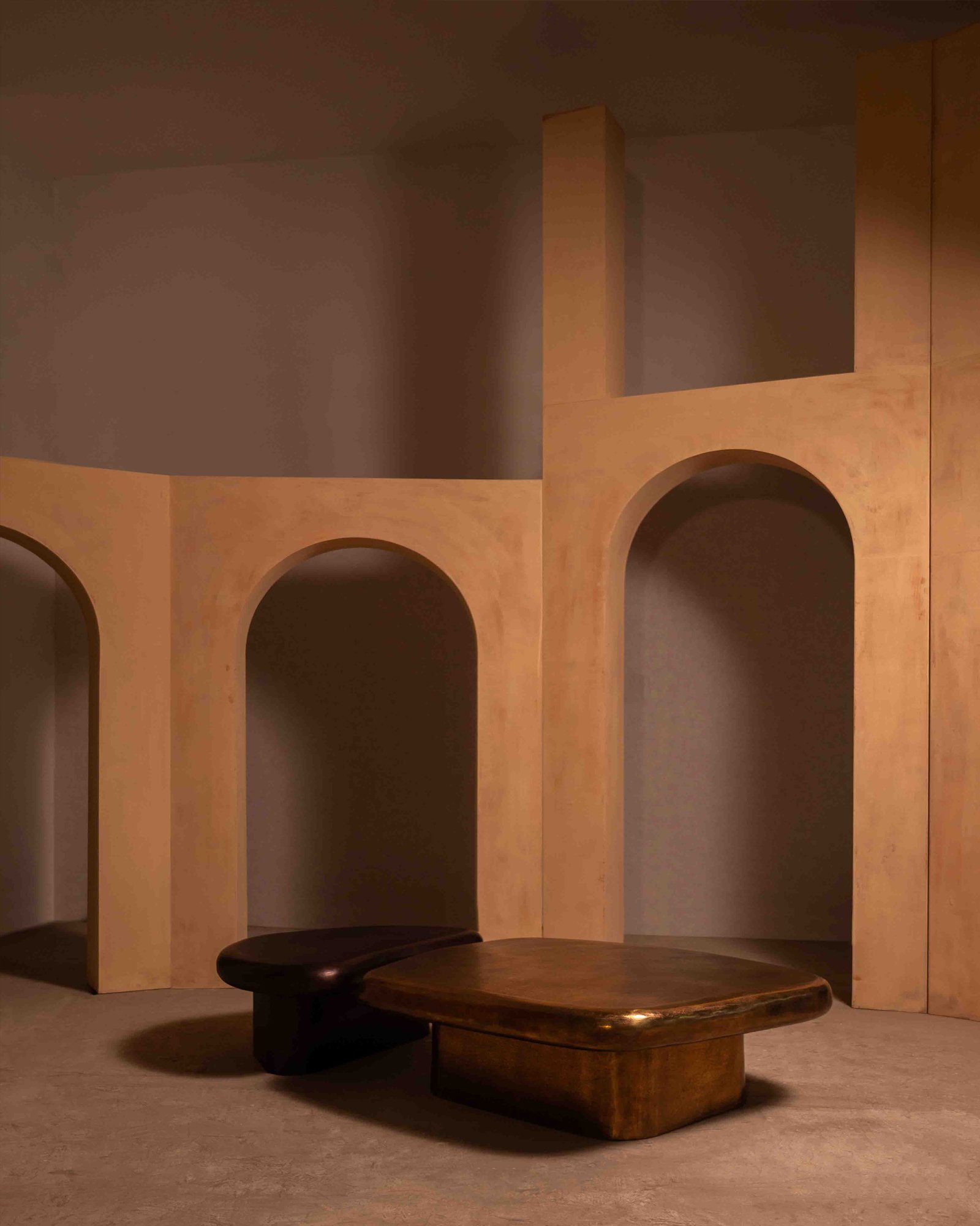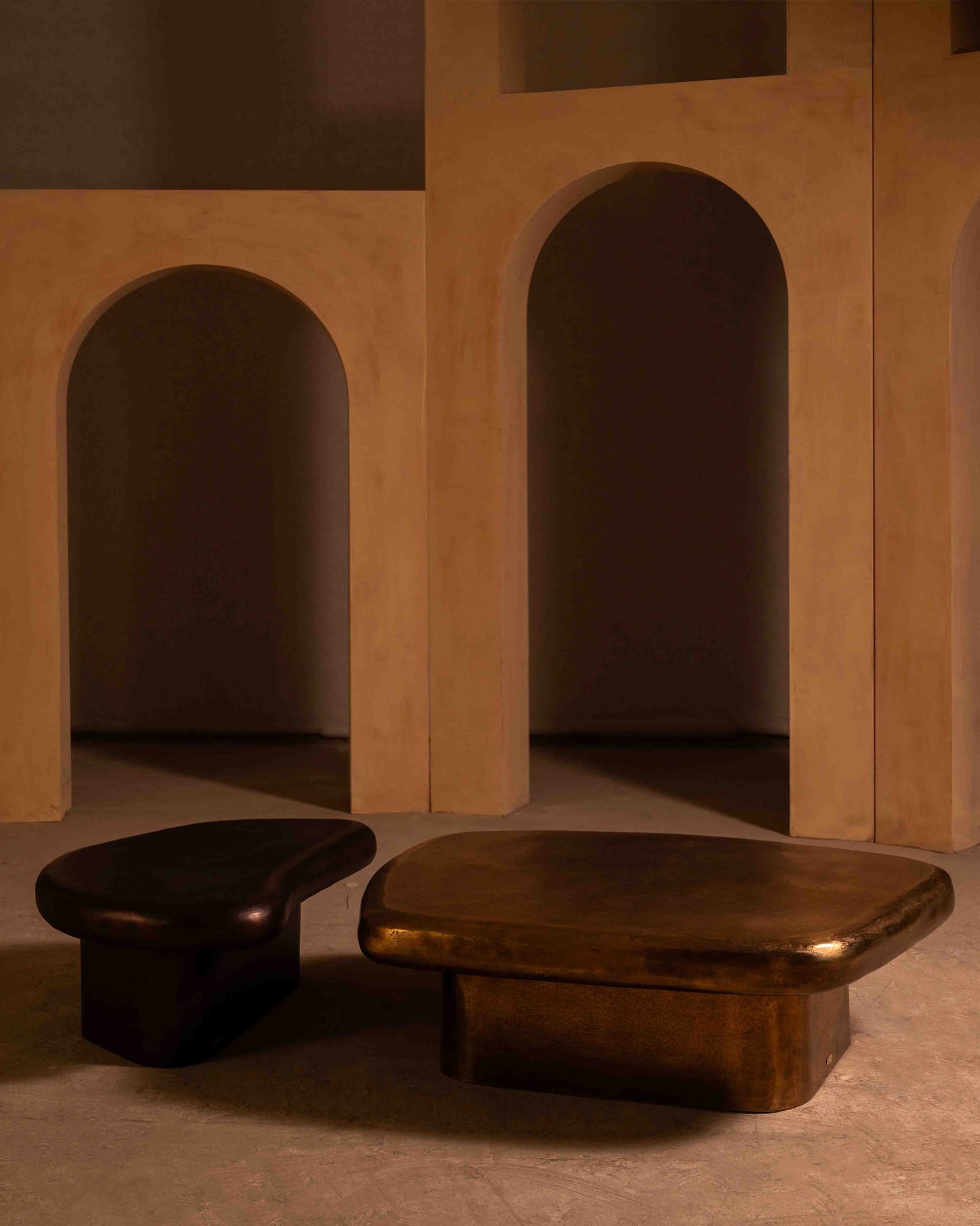 The Oculus Coffee Table takes its form from softened geometry, low and expansive, with edges that feel shaped rather than drawn. Cast in aluminium and finished in antique brass, the surface carries natural undulations that catch light unevenly. Designed to sit close to the ground, it anchors a living space with weight and presence while allowing surrounding elements to breathe.