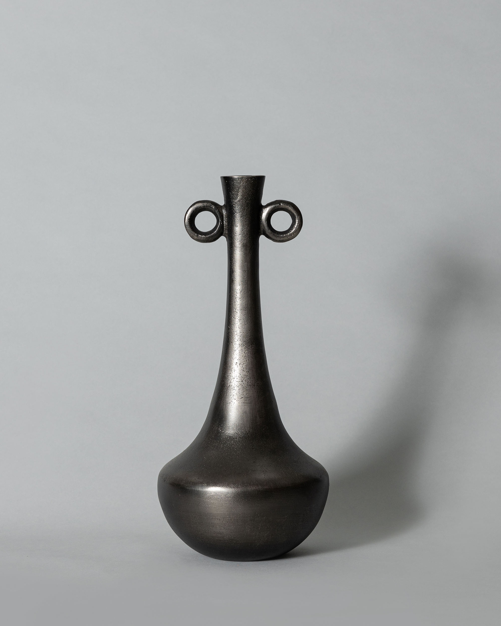 Shop Trava Vase in cast aluminium with black nickel finish a tall sculptural accent ideal for floral arrangements or as a festive decorative piece