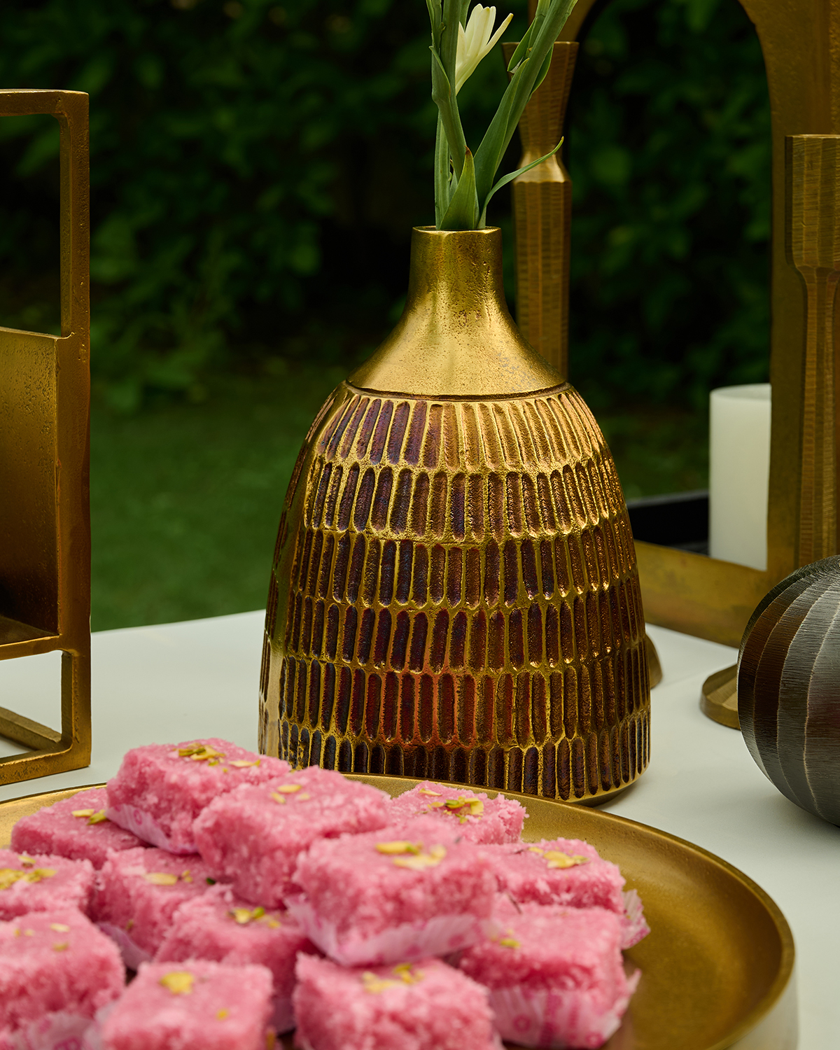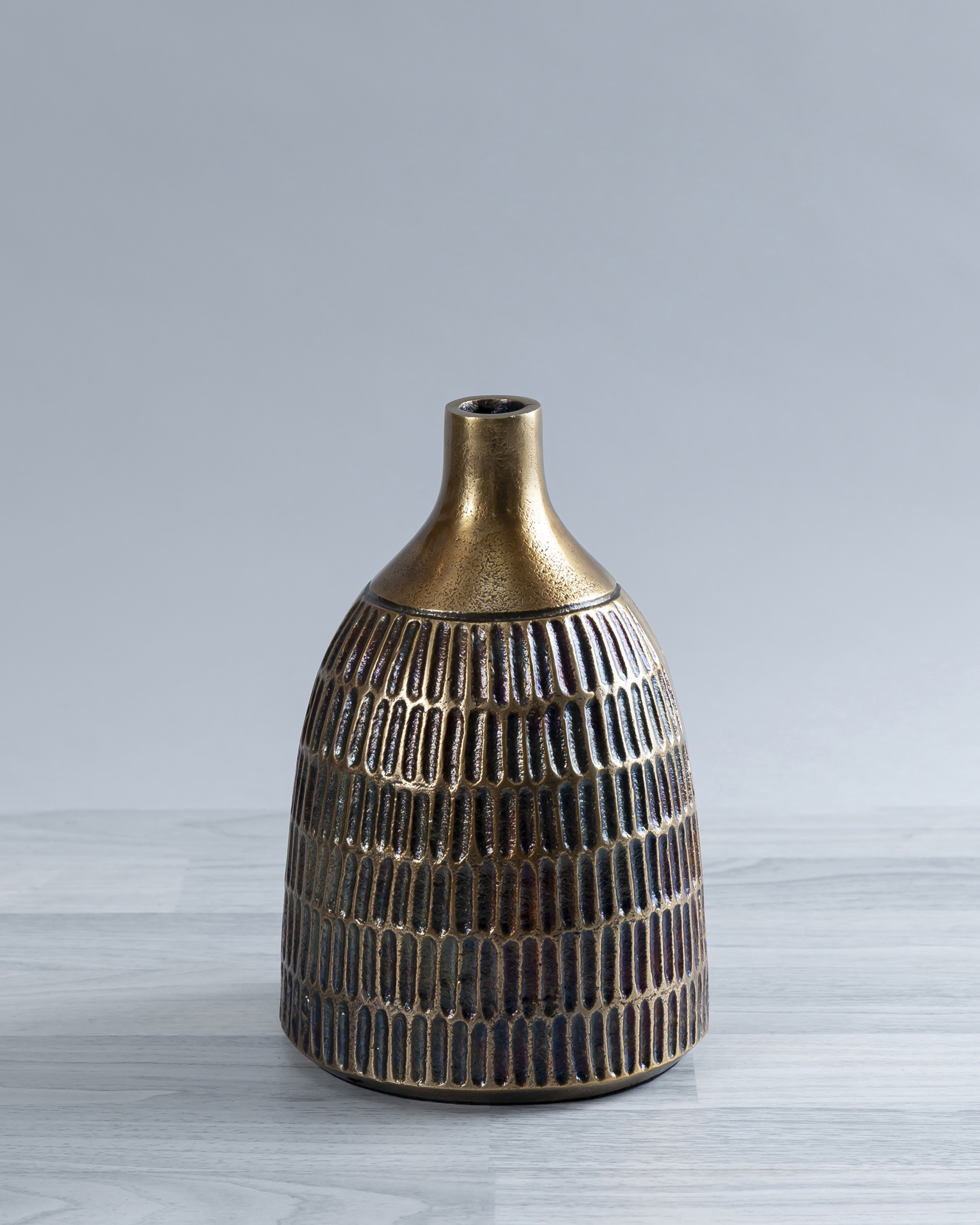 Shop Vasiliki Vase in cast aluminium with rainbow finish a vibrant sculptural accent that adds contemporary flair to festive floral styling
